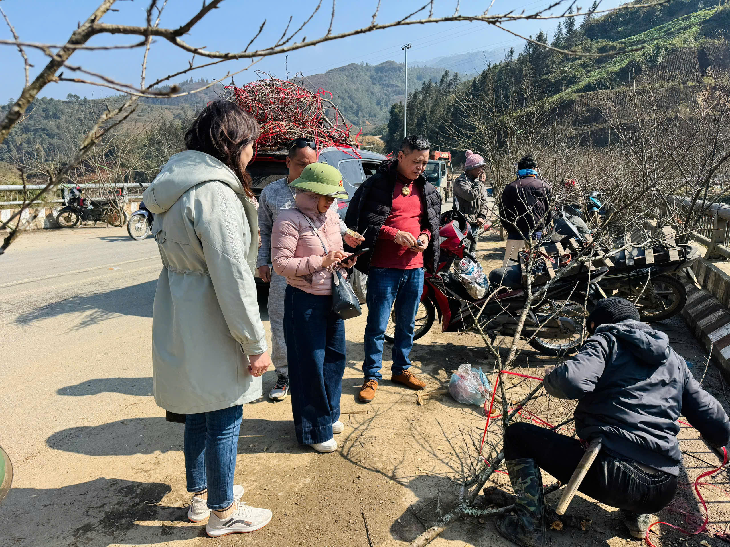 Nhiều khách đã mua nhiều cành cùng lúc để đưa về xuôi chơi.