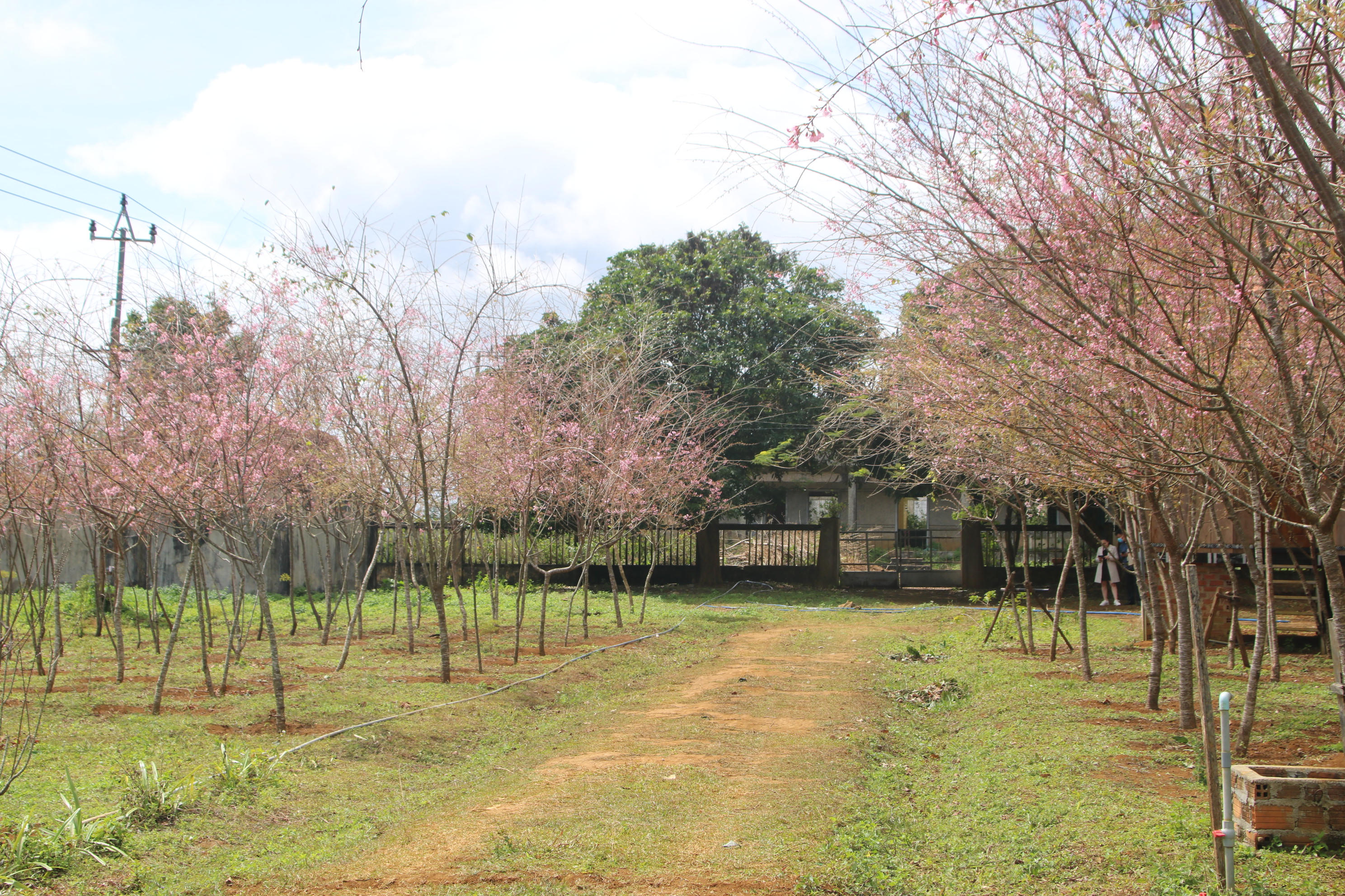 Người dân Vĩnh Sơn trồng hoa đào xung quanh nhà và bên đường.