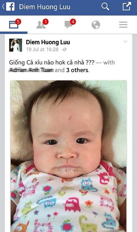 Người đẹp sinh năm 1990 cũng khiến nhiều người tò mò và đặt ra nghi vấn khi thường xuyên đăng tải những bức hình trẻ em dễ thương trên trang cá nhân. Bên cạnh đó, cô dành sự quan tâm tới chuyện sinh nở: "Nghe nói Việt Nam mình đang khuyến khích sinh. Có phải vì vậy mà đâu đâu cũng thấy đăng hình em bé mới sinh đỏ hỏn (so cute), rồi hôm qua giờ cứ thấy các bạn nữ đăng hình hai vạch, các bạn nam thì đăng hình tự sướng kể vợ sắp sinh. Gì chứ vụ này, người Việt Nam hưởng ứng mạnh mẽ và thực hiện nghiêm túc nhỉ?".