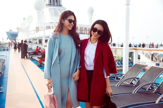 Hoa hậu Đỗ Mỹ Linh cùng Á hậu Thanh Tú thắng cảnh trên du thuyền triệu đô