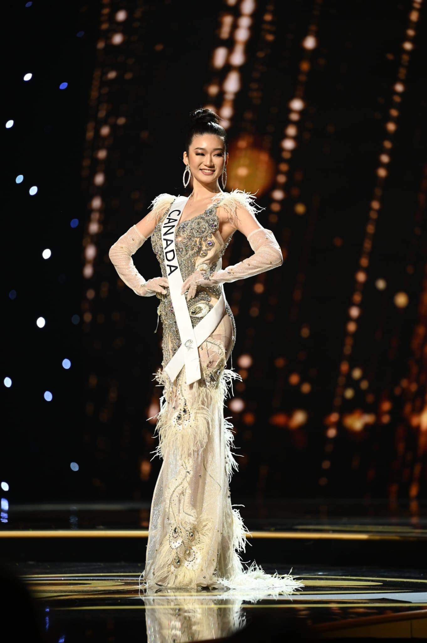 Đại diện Canada - Amelia Tu tỏa sáng trong đêm bán kết Hoa hậu Hoàn vũ lần thứ 71. |