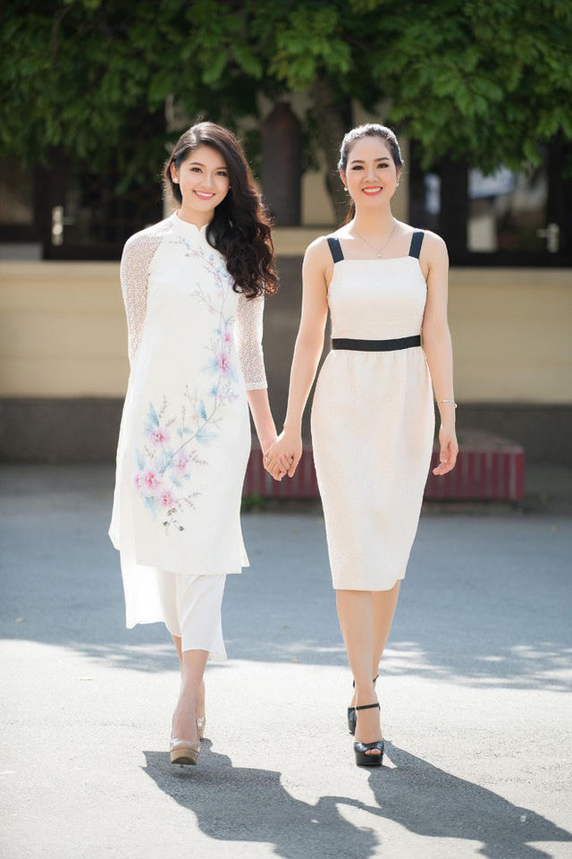 Nếu Hoa hậu Mai Phương "trở lại" với vẻ đẹp đằm thắm thì Á hậu Thùy Dung lại dịu dàng trong chiếc áo dài trắng cách tân. Cả hai đều có buổi giao lưu vô cùng thẳng thắn và thân mật với các bạn sinh viên.