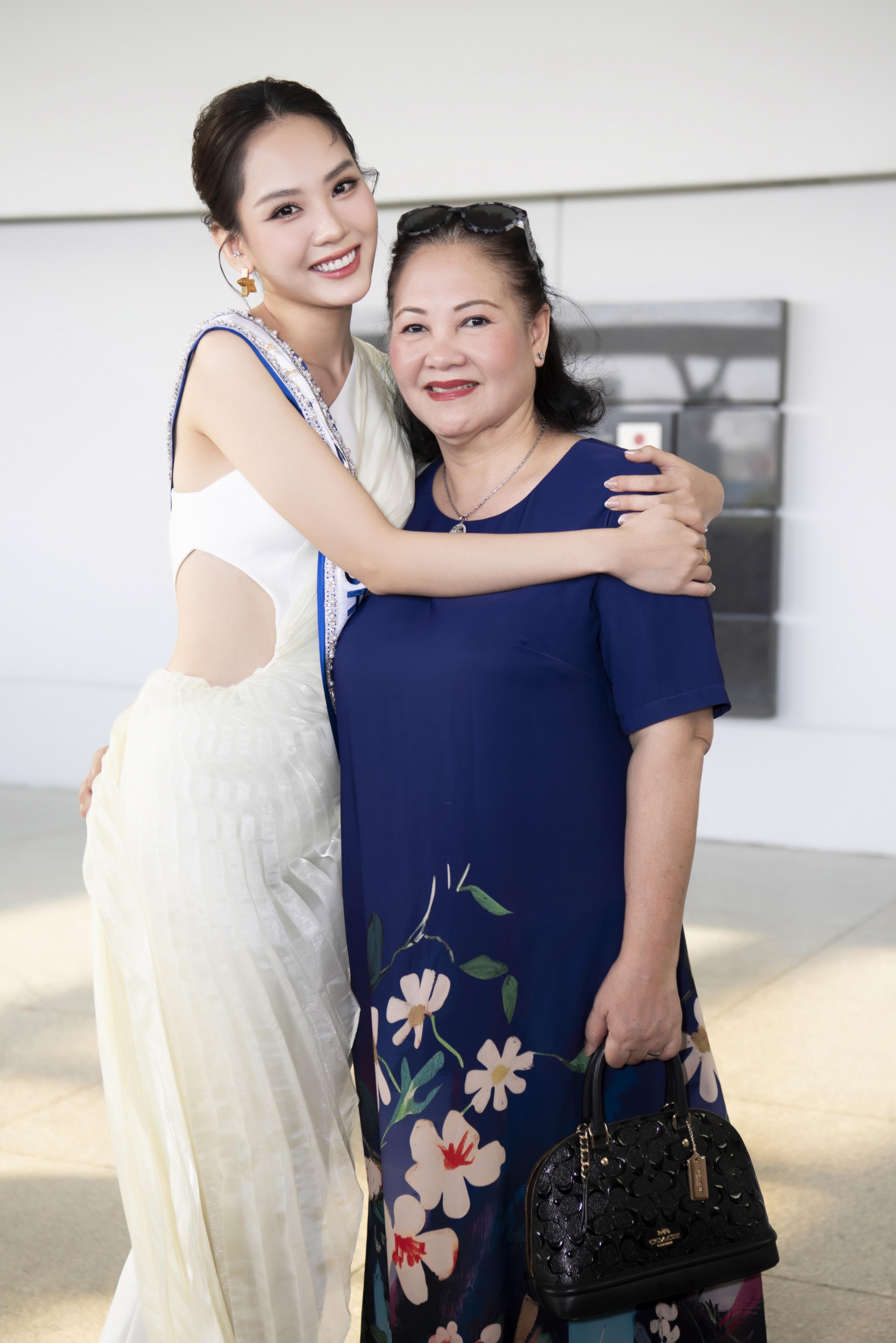 Mai Phương được mẹ, CEO Phạm Kim Dung và bạn bè ra sân bay tiễn trước thềm "chinh chiến". |