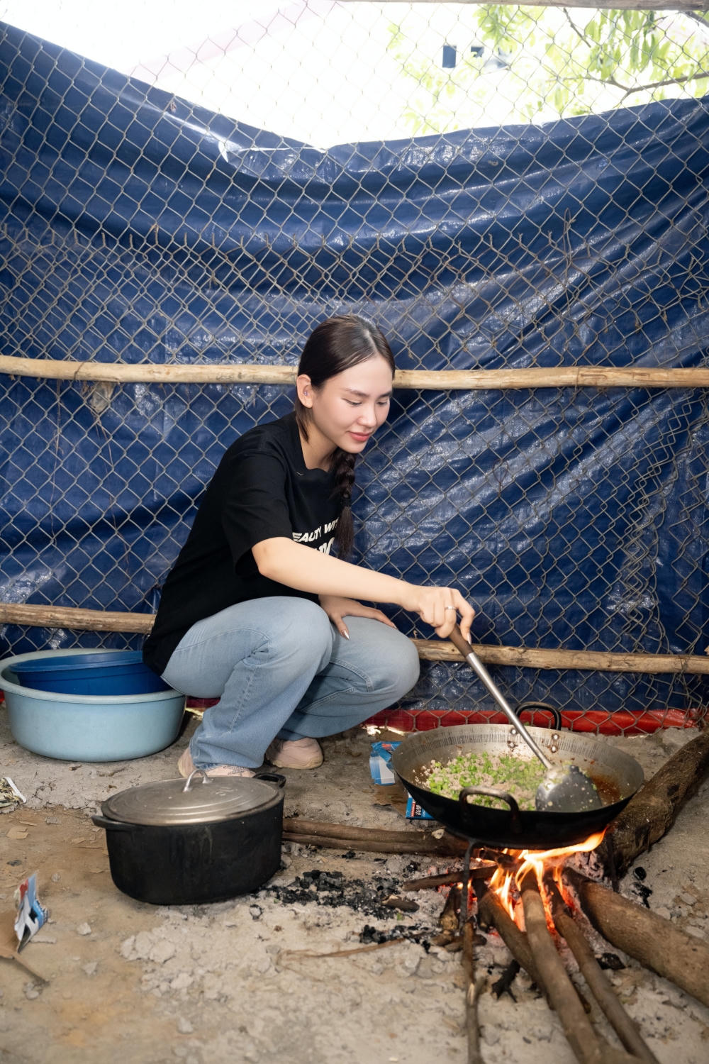 Nhân dịp này, Mai Phương đã đích thân khảo sát để xây dựng lại một nhà bếp khang trang và đảm bảo an toàn hơn cho điểm trường. Bên cạnh đó, cô tự tay vào bếp để chuẩn bị một bữa ăn nhỏ cho các em.