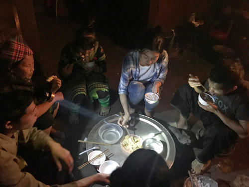 Bữa cơm đạm bạc của Hoa hậu Đỗ Mỹ Linh và người dân vùng lũ Yên Bái. |