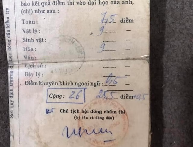 Hoa hậu Ngọc Hân chia sẻ hình ảnh điểm thi đại học của bố cô nhiều năm về trước.