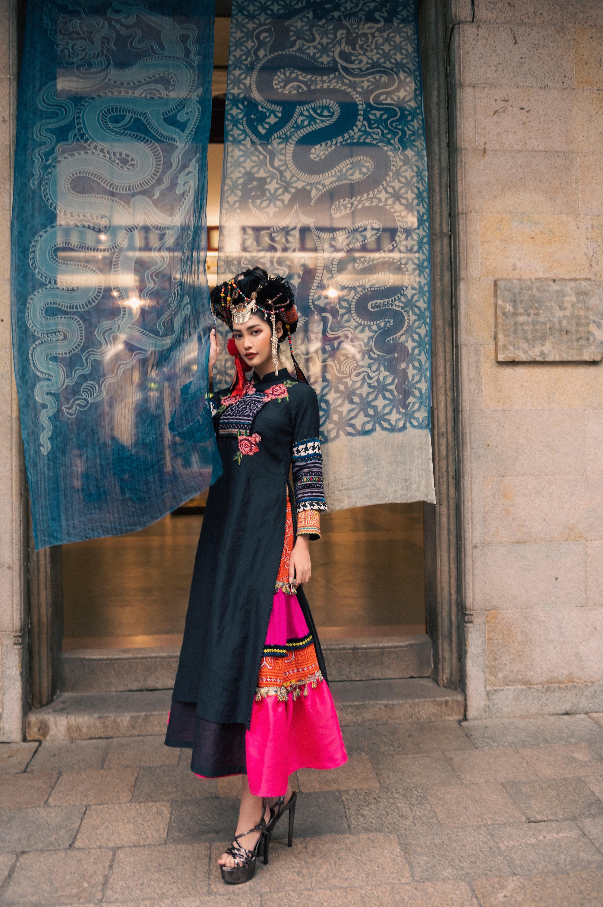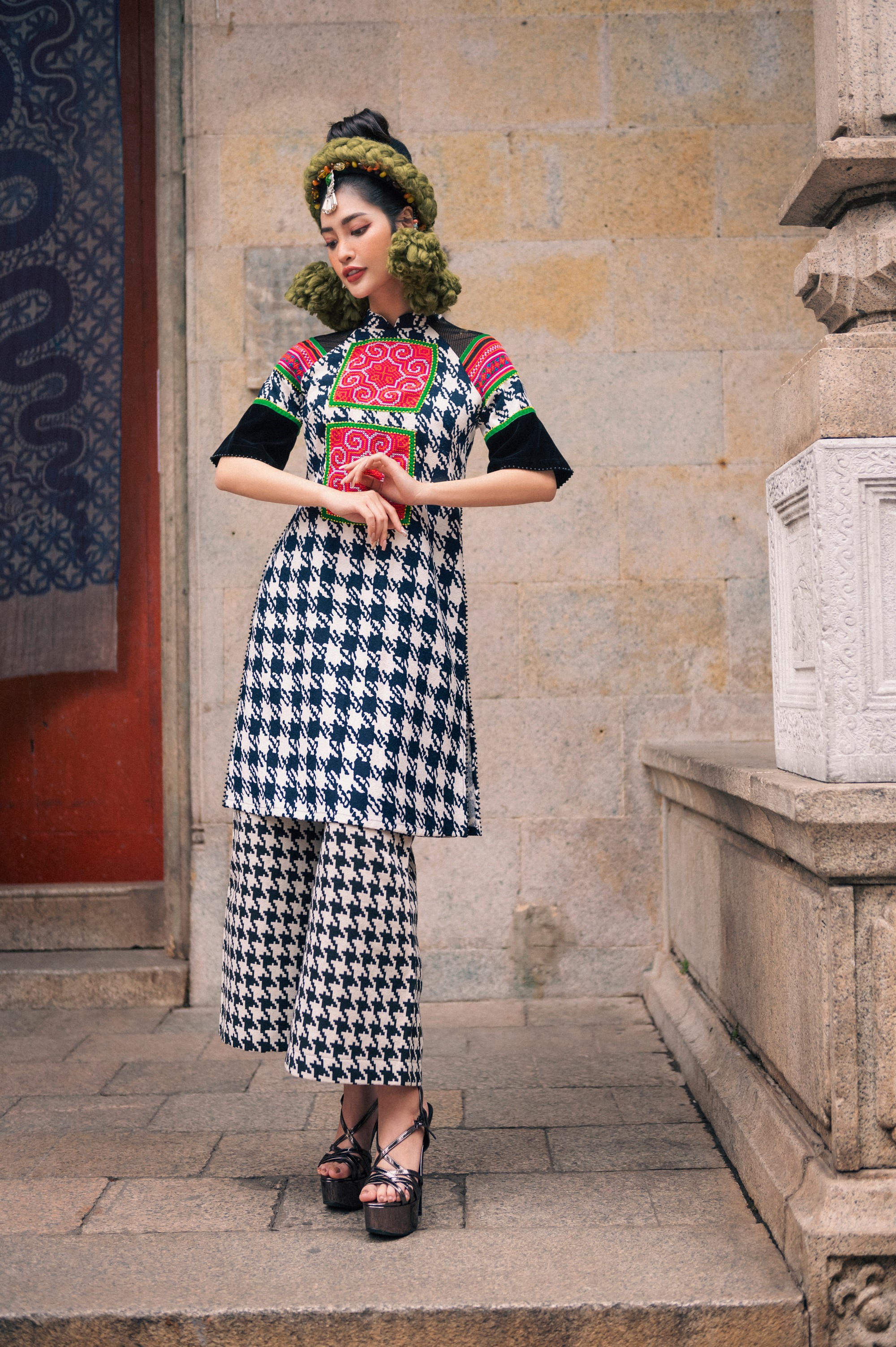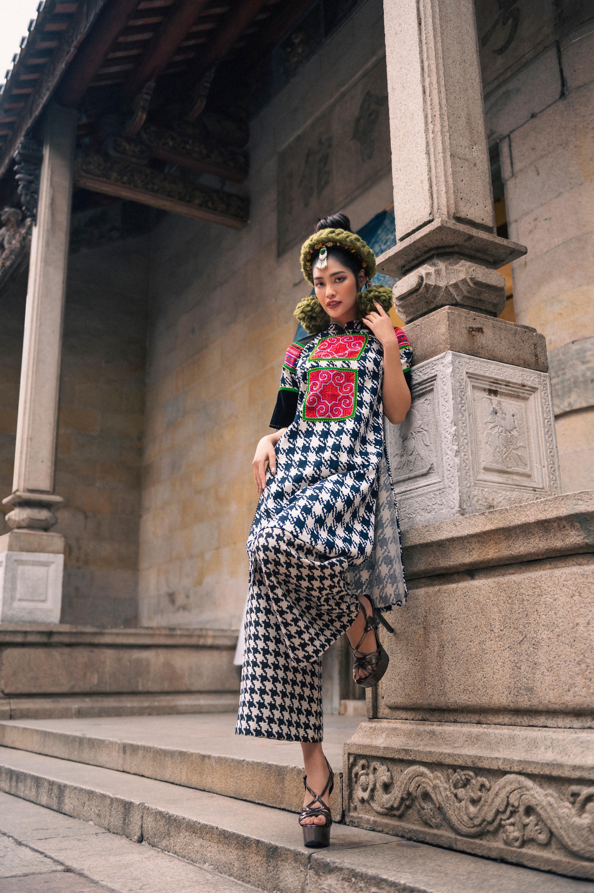 Nông Thúy Hằng có những tạo dáng nhẹ nhàng, chuyển động thanh thoát thể hiện hình ảnh cổ điển, duyên dáng của người phụ nữ Việt Nam, phù hợp với trang phục và ý tưởng của bộ ảnh. Người đẹp cho biết, cô luôn tự hào mỗi khi được khoác lên người tà áo dài và các họa tiết thổ cẩm mang nét đẹp văn hóa của các dân tộc vùng núi phía Bắc.