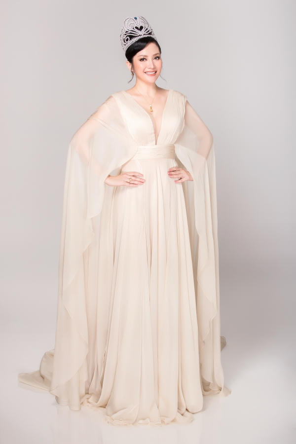 Hoa hậu Thiên Nga chụp ảnh kỷ niệm 30 năm Hoa hậu Việt Nam. |
