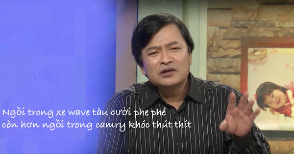NSND Quốc Anh chia sẻ, anh thích nhất câu này: "Một người phụ nữ ngồi sau xe wave tàu cười phe phé hơn là người phụ nữ ngồi trong camry mà lại thút thít khóc".