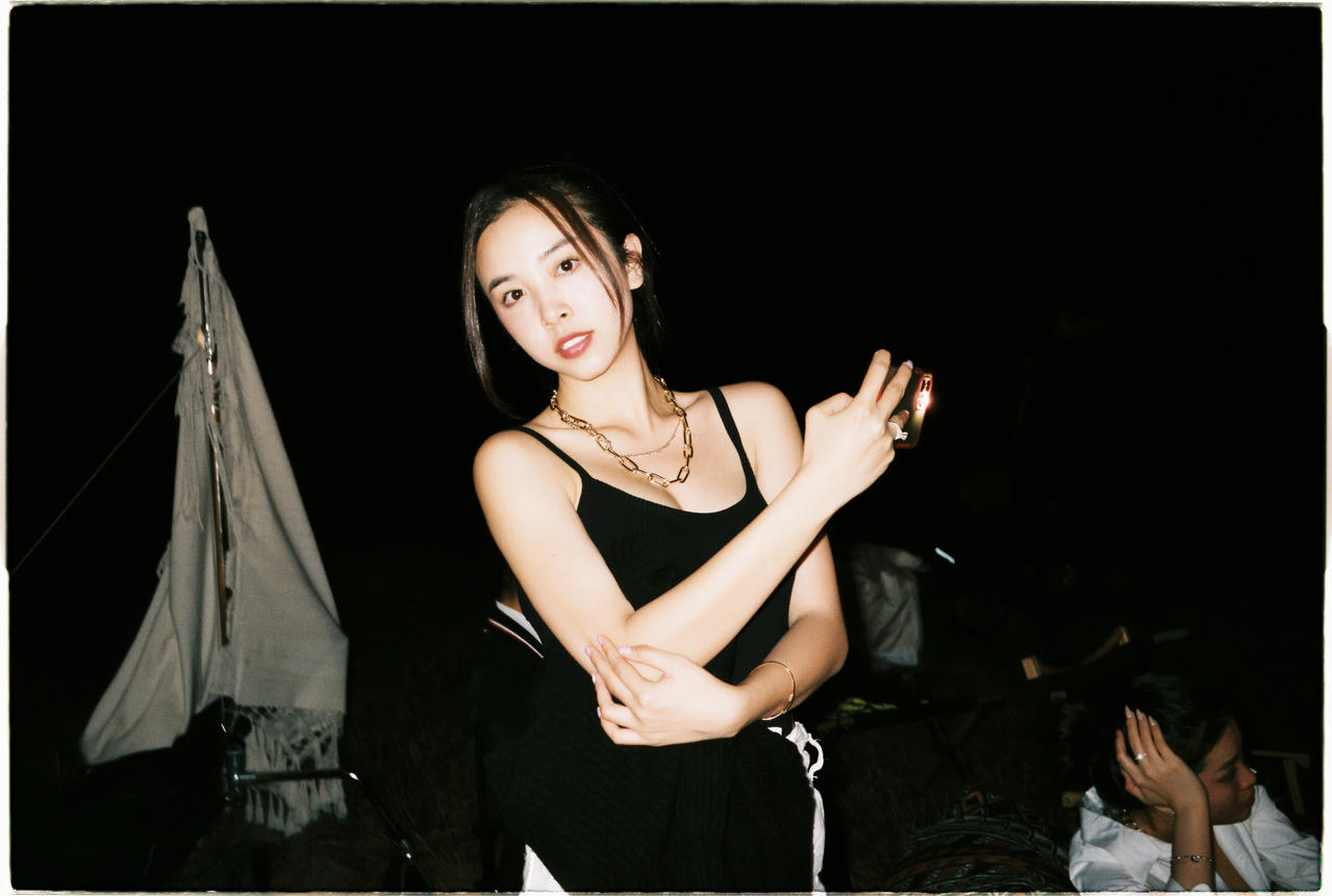 Á hậu Thuý An cá tính với áo dây cùng phụ kiện ấn tượng.