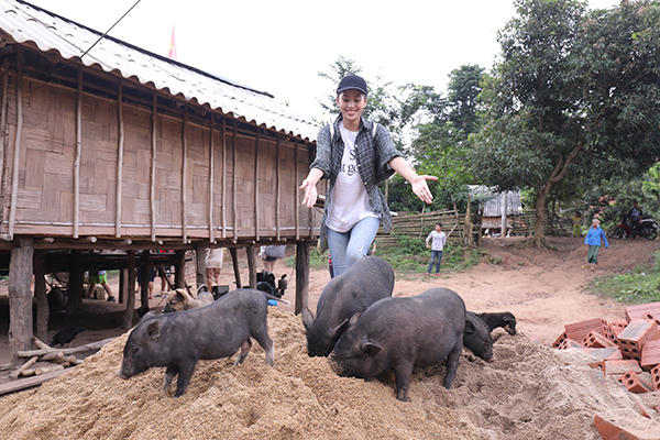 Cô trực tiếp tham gia vào quá trình dọn cỏ, đẩy xe, đào đất cùng bộ đội biên phòng. Sau các hoạt động nhân ái và gặp gỡ trẻ em, người dân ở nhiều vùng miền, Tiểu Vy chia sẻ với những người đồng hành rằng cô muốn theo đuổi các hoạt động này lâu dài.