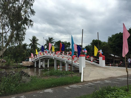 | Cầu Kinh Giữa hoàn thành có chiều dài 30 mét - rộng 2,7 mét – cao 2,8 mét với tổng kinh phí xây cầu là 300 triệu đồng, trong đó Hoa hậu Kim Nguyễn tài trợ số tiền 250 triệu đồng |