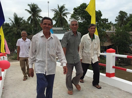 Cụ Ông Trần Văn Tứ (ngụ Ấp Hòa Bình) xúc động: “Từ nay có cầu mới, tui qua sông lễ Phật được dễ dàng hơn, bà con và các cháu học sinh đi học qua sông được an toàn, rất cảm ơn Hoa hậu Kim Nguyễn và các nhà hảo tâm đã xây cầu cho bà con”.
