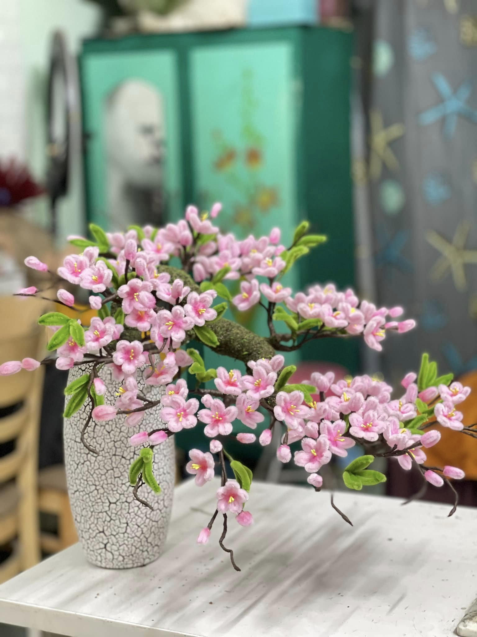 Do nguyên liệu đơn giản, thay vì mua, nhiều chị em còn rủ nhau tự làm tại nhà và khoe thành quả lên mạng. Thấy hiều người chia bày làm đơn giản, chị Thu Hiền (26 tuổi, Đống Đa, Hà Nội) quyết định mua nguyên liệu về tranh thủ làm thử vào những khoảng thời gian rảnh. Chị Hiền cho biết: "Mới đầu chưa biết làm nên mất nhiều thời gian, phải mất 2 buổi tối mới hoàn thiện được 1 cành có 5,6 bông hoa. Để tạo ra 1 bình hoa 5 cành tôi làm trong gần 1 tuần mới xong, vừa đau lưng lại đau tay vì phải nắm chỉnh nhiều. Tuy nhiên thành quả vô cùng ưng ý, hoa đều đẹp, cho bạn bè đồng nghiệp xem ai cũng khen".