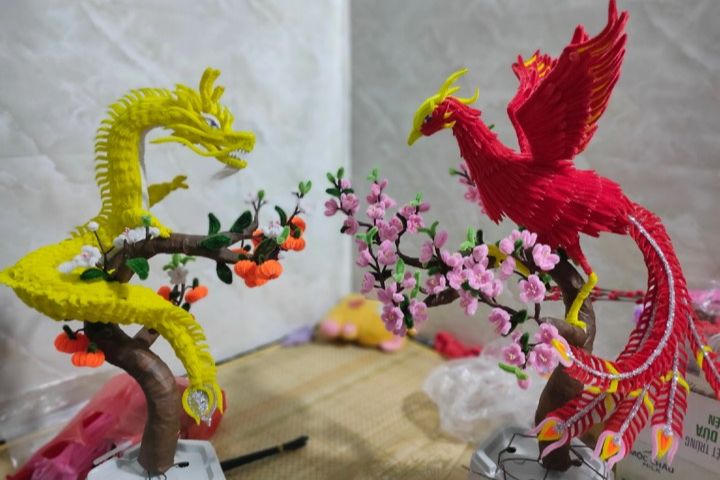 Nhiều người còn sáng tạo ra những con rồng, con phượng bằng kẽm trên những cây hoa. Ảnh: Tiktok |