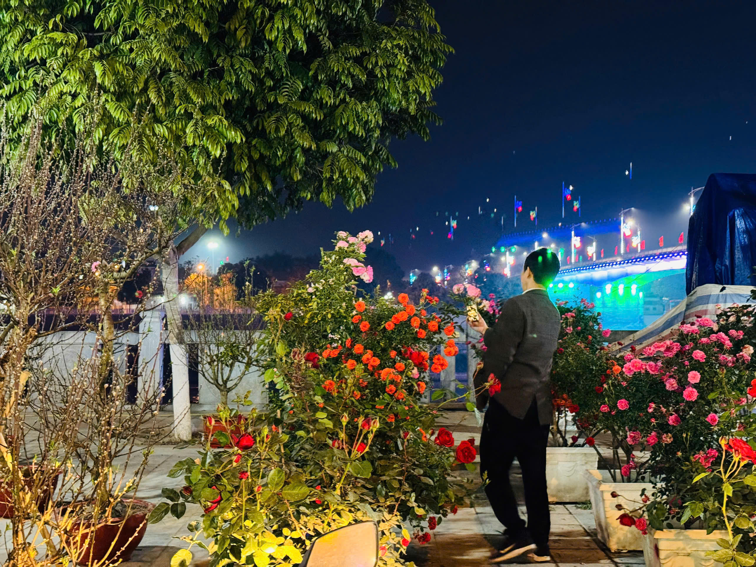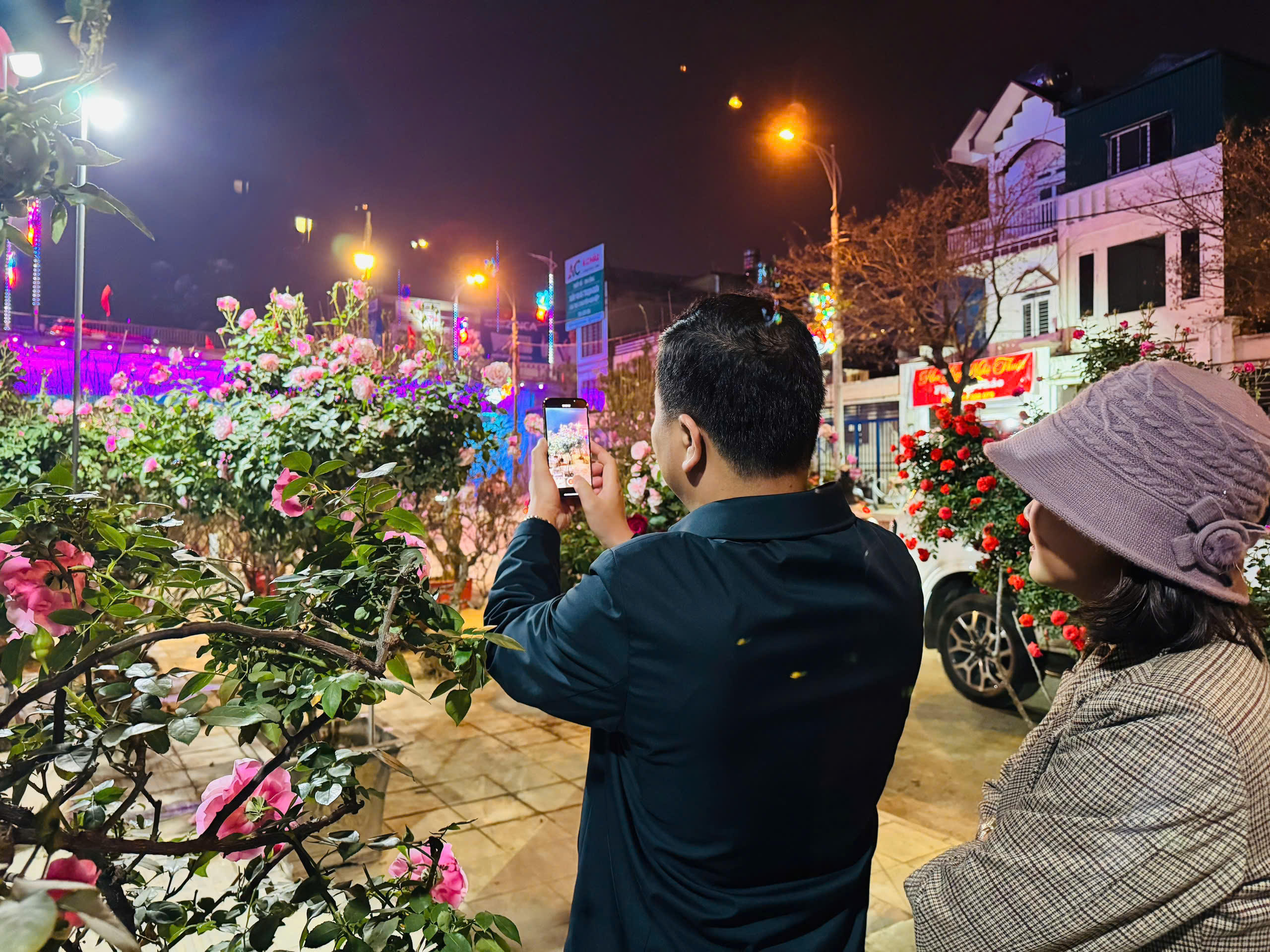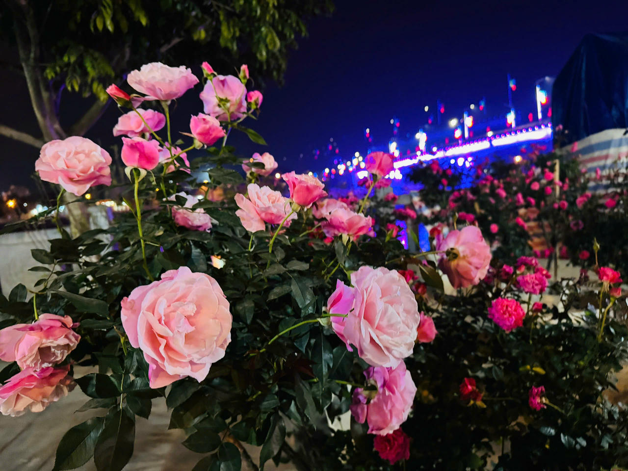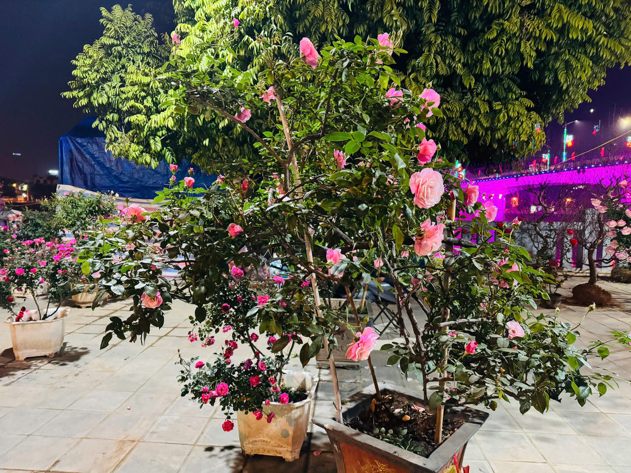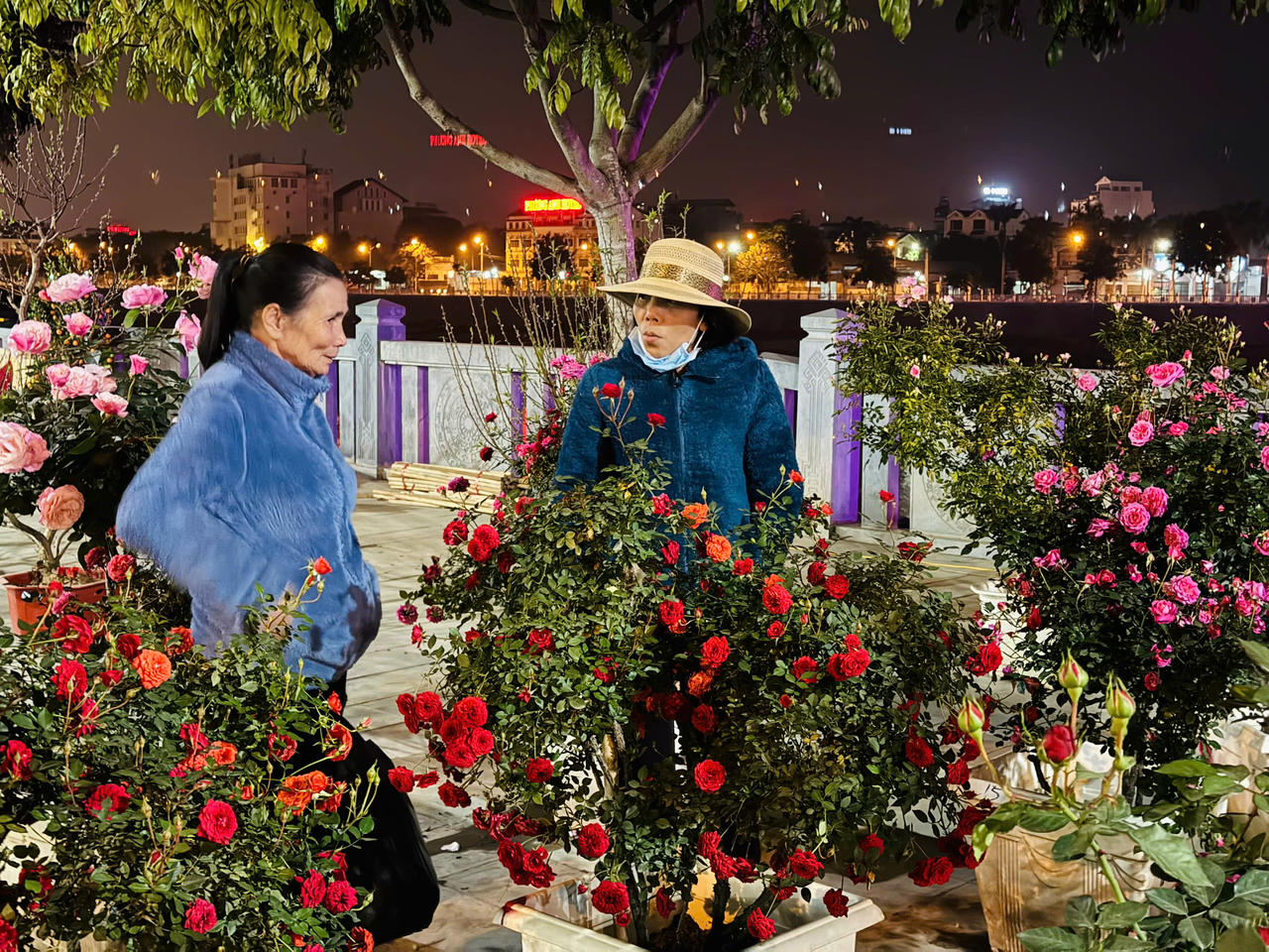 Mặc dù đã hơn 21h nhưng khu vực bán hoa hồng cổ vẫn thu hút khách