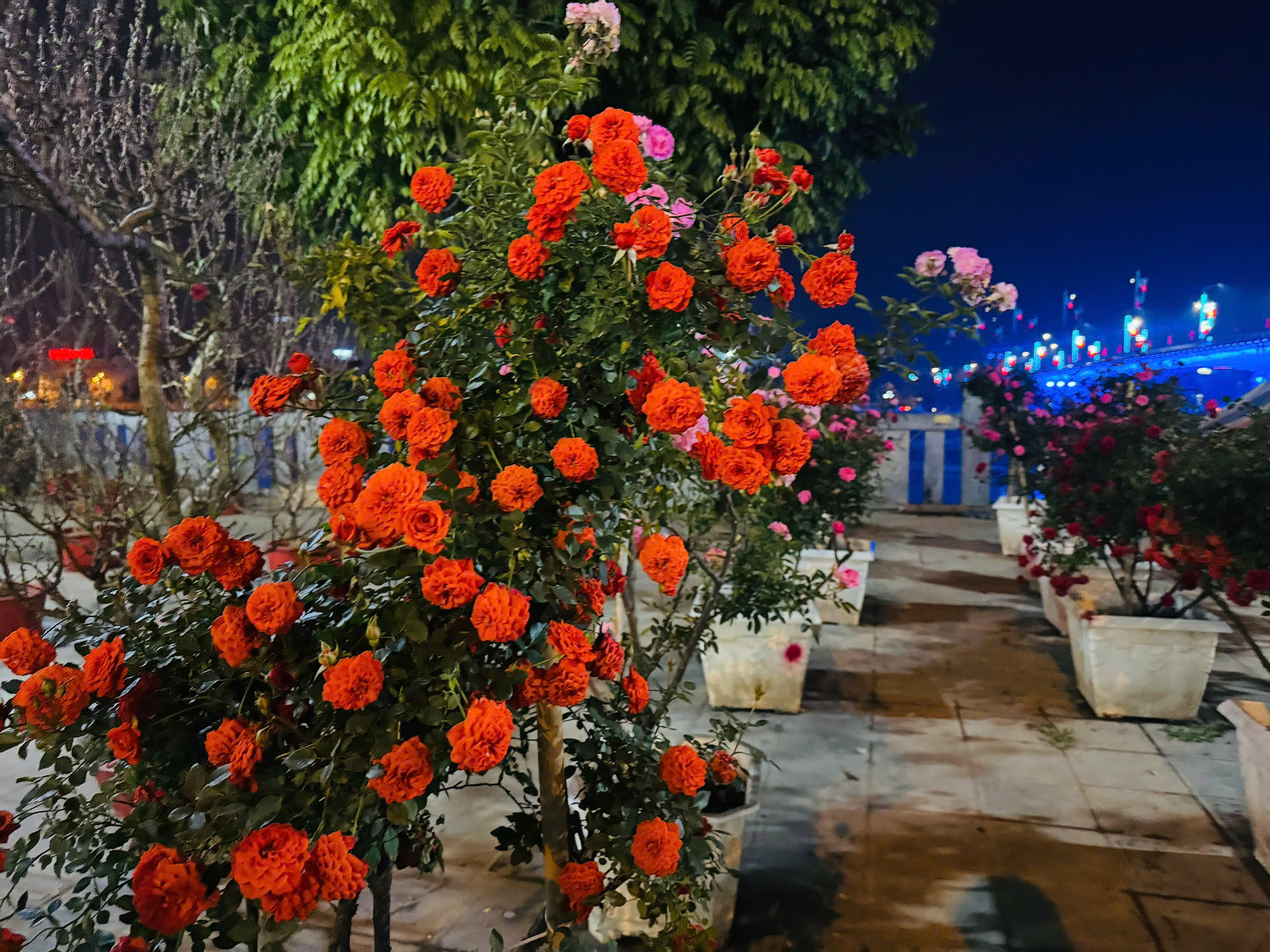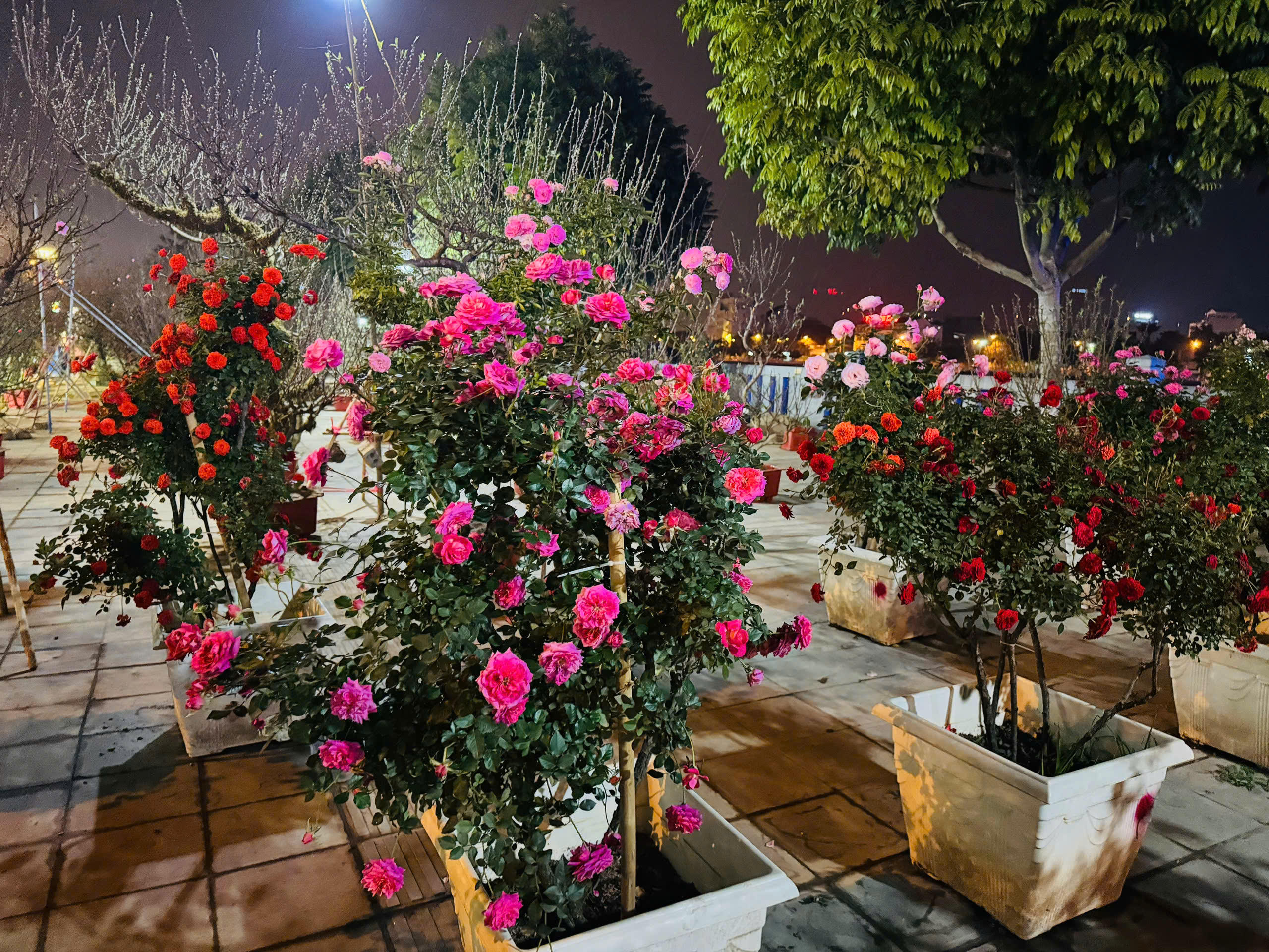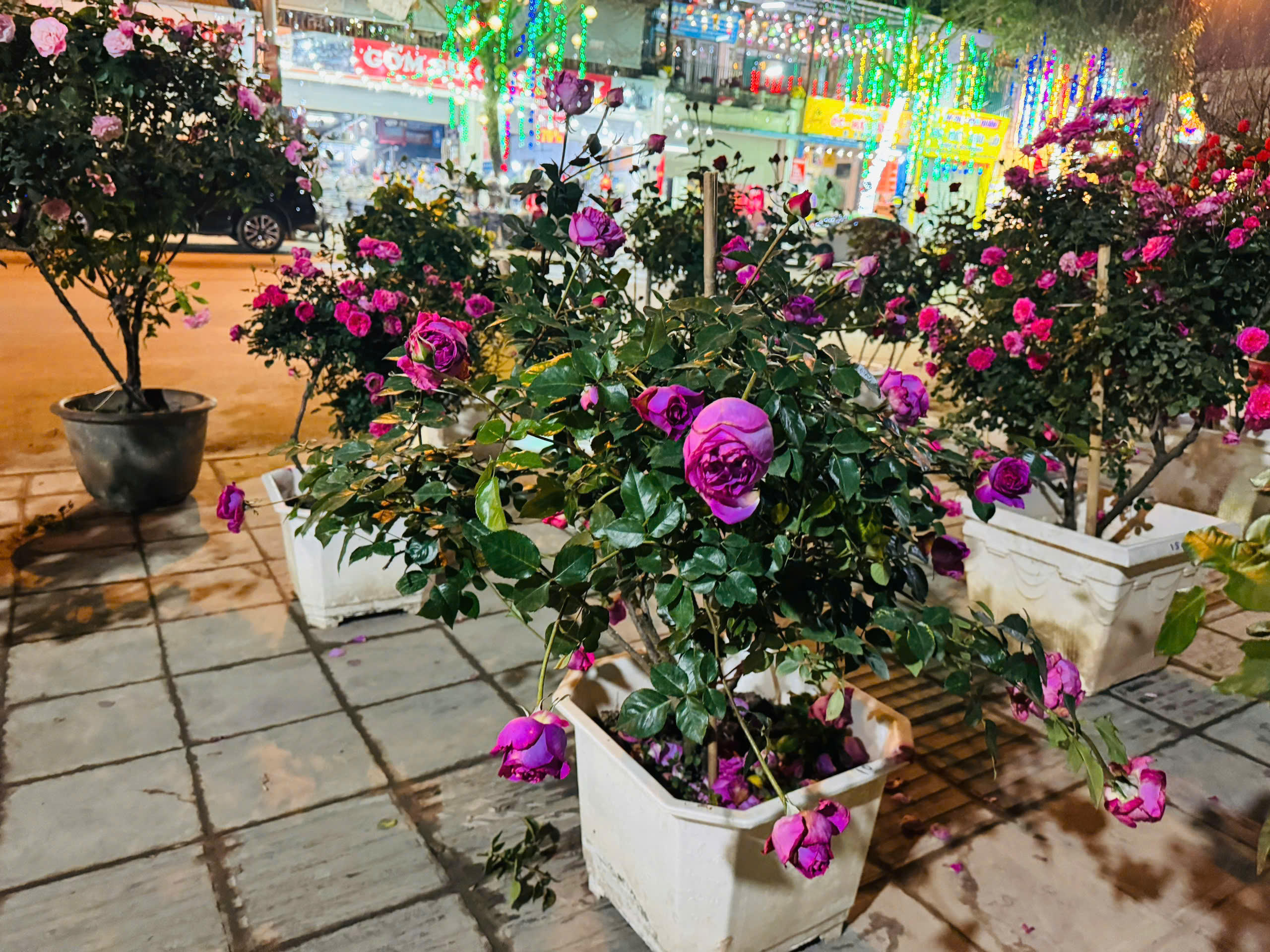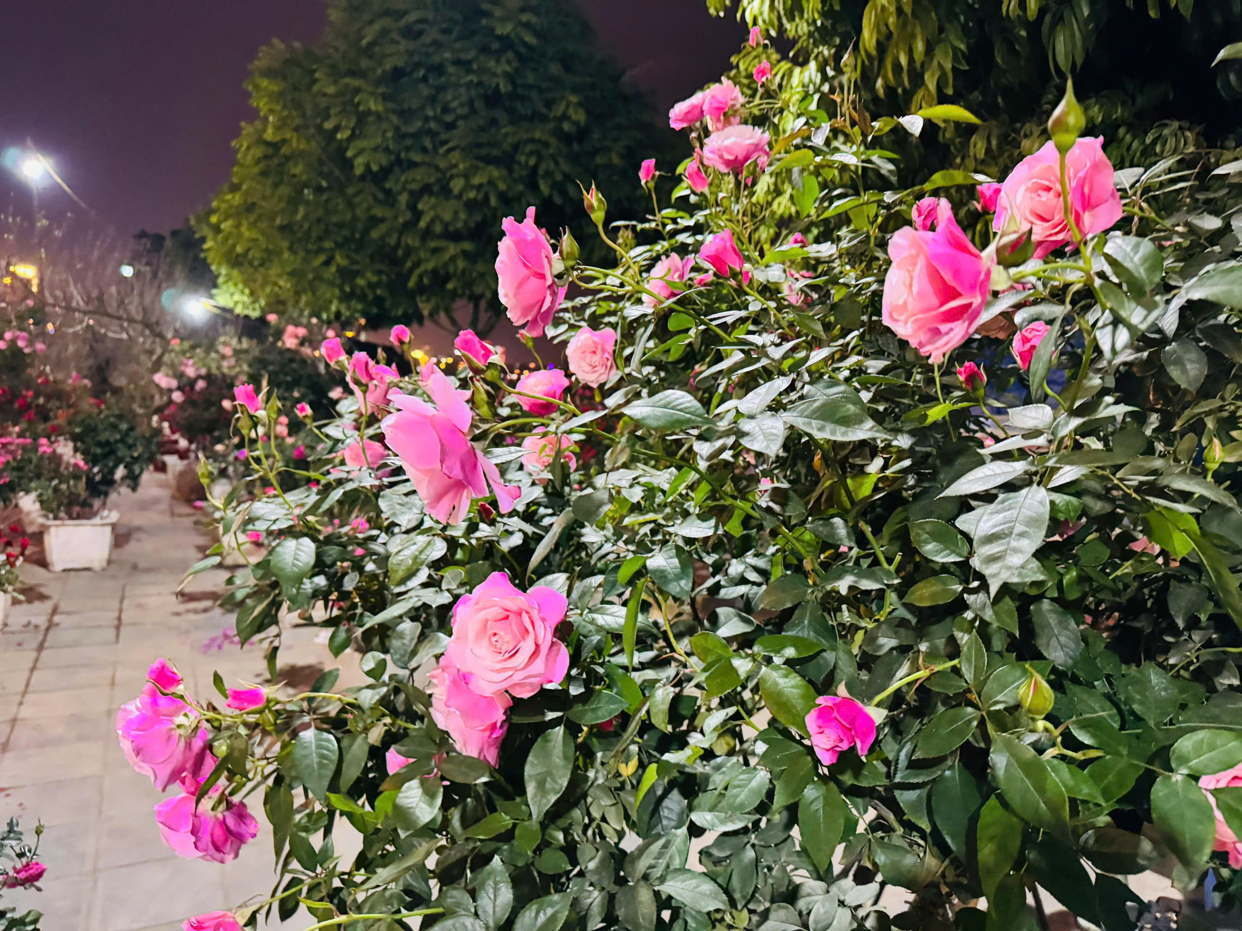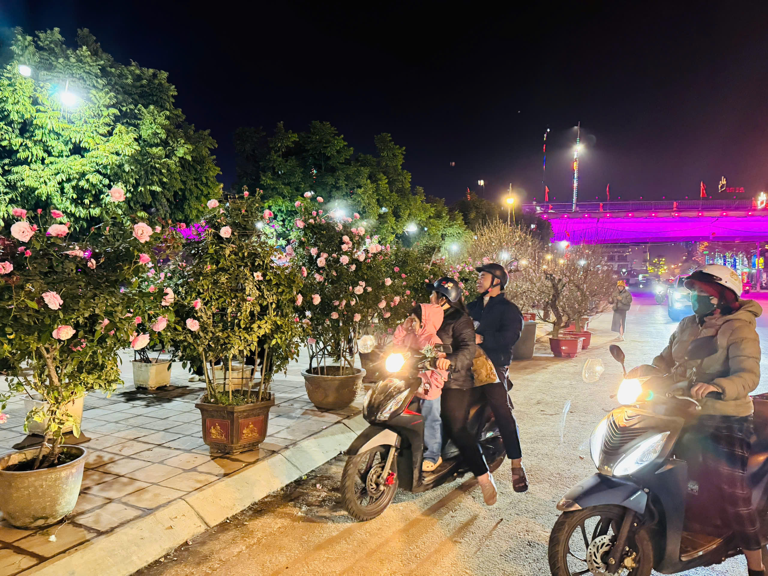 Mặc dù đã hơn 21h nhưng khu vực bán hoa hồng cổ vẫn thu hút khách