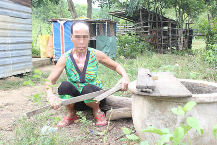 Những năm trước, khi mới về làng hoàn lương lập nghiệp, vì không có đất canh tác, bà Thủy cũng như nhiều người khác hằng ngày đi rừng kiếm củi bán lấy tiền để đổi gạo, mua thức ăn. Mùa giông bão, bà đi giữ bò, cắt cỏ thuê.