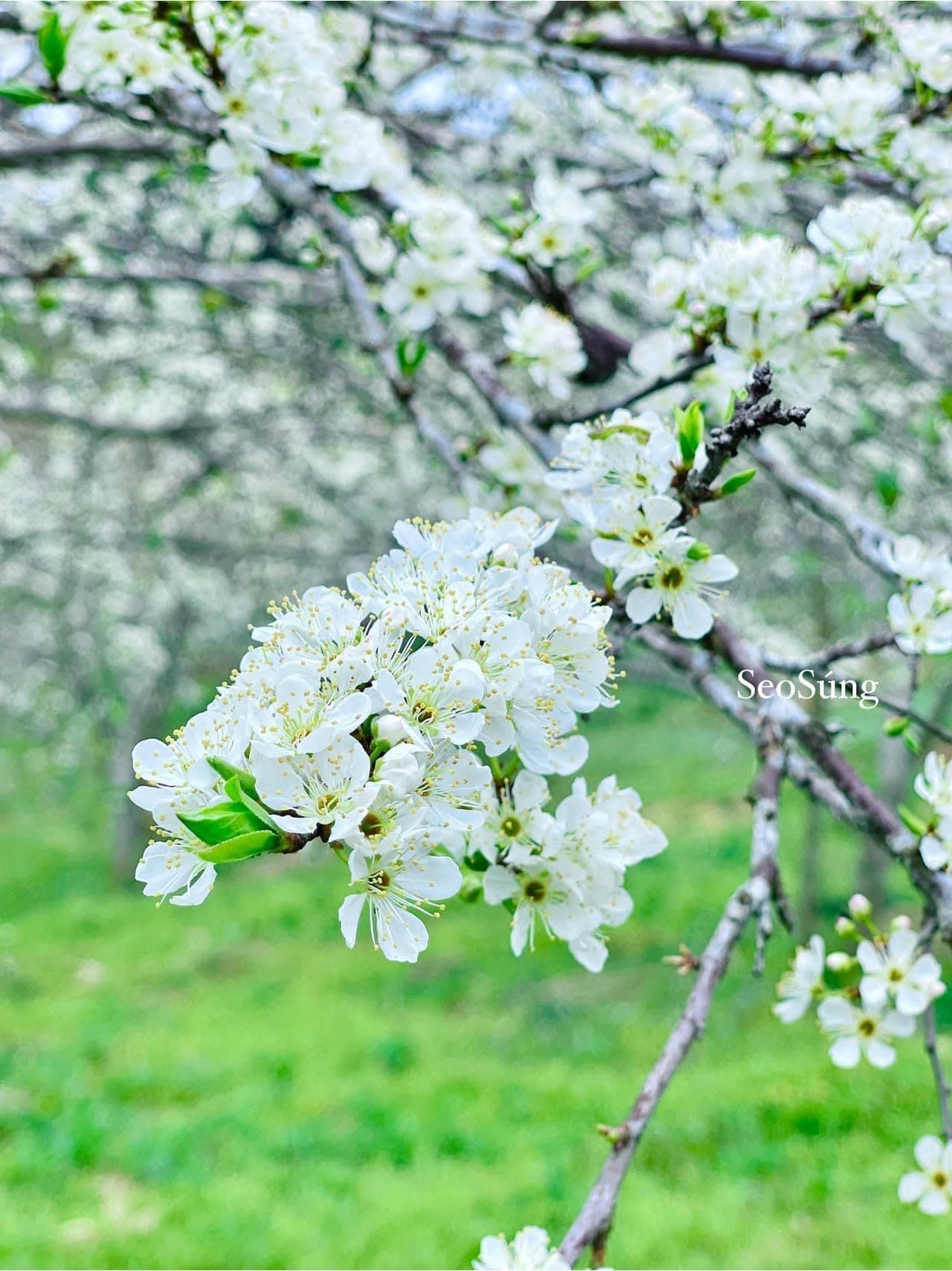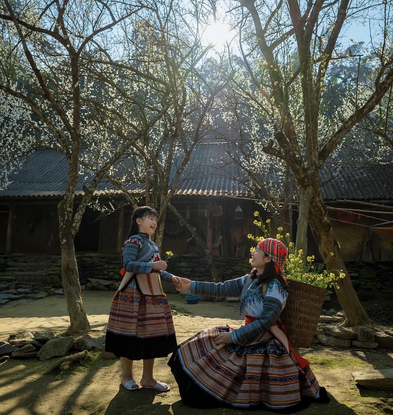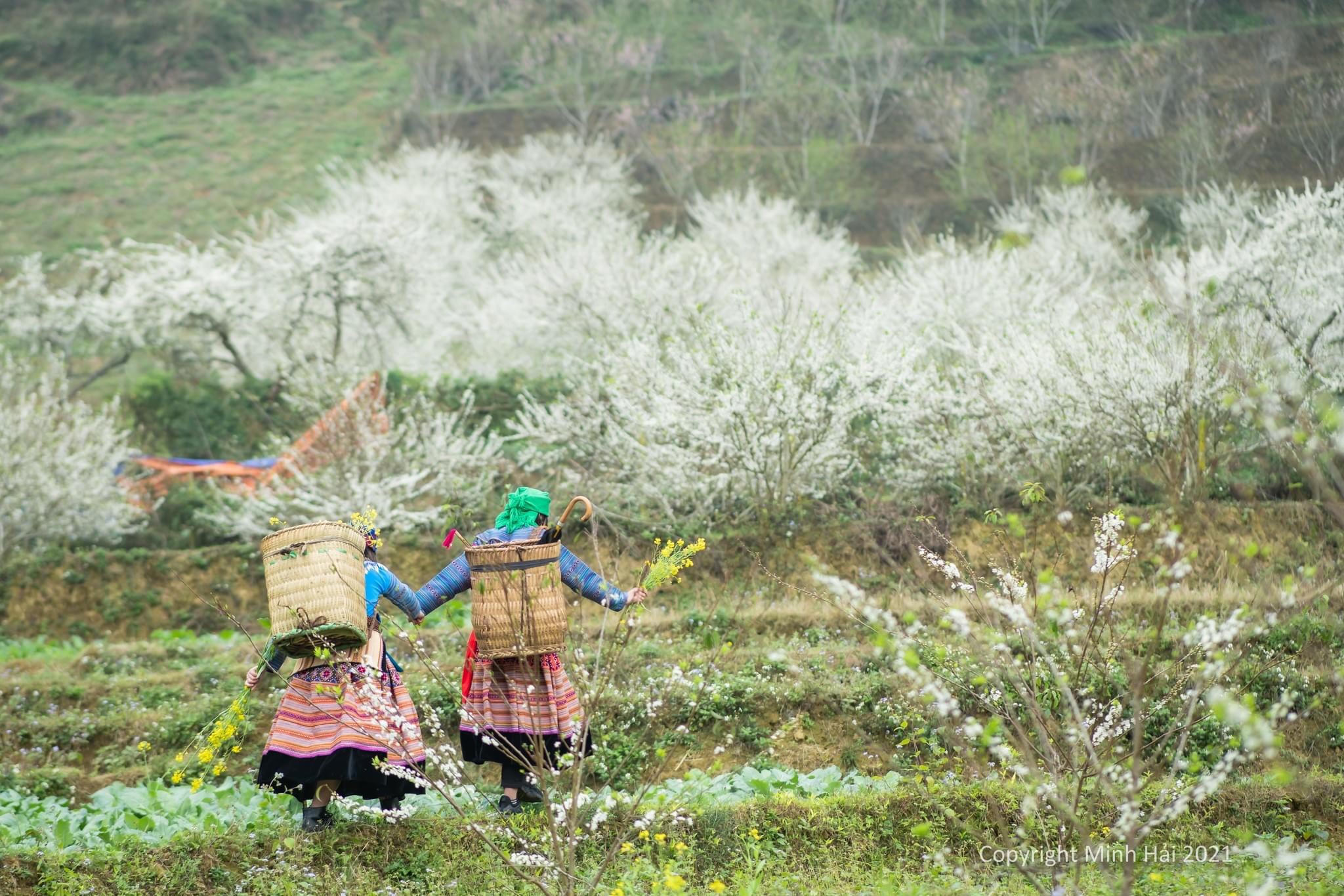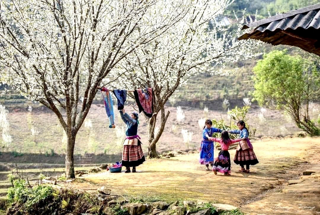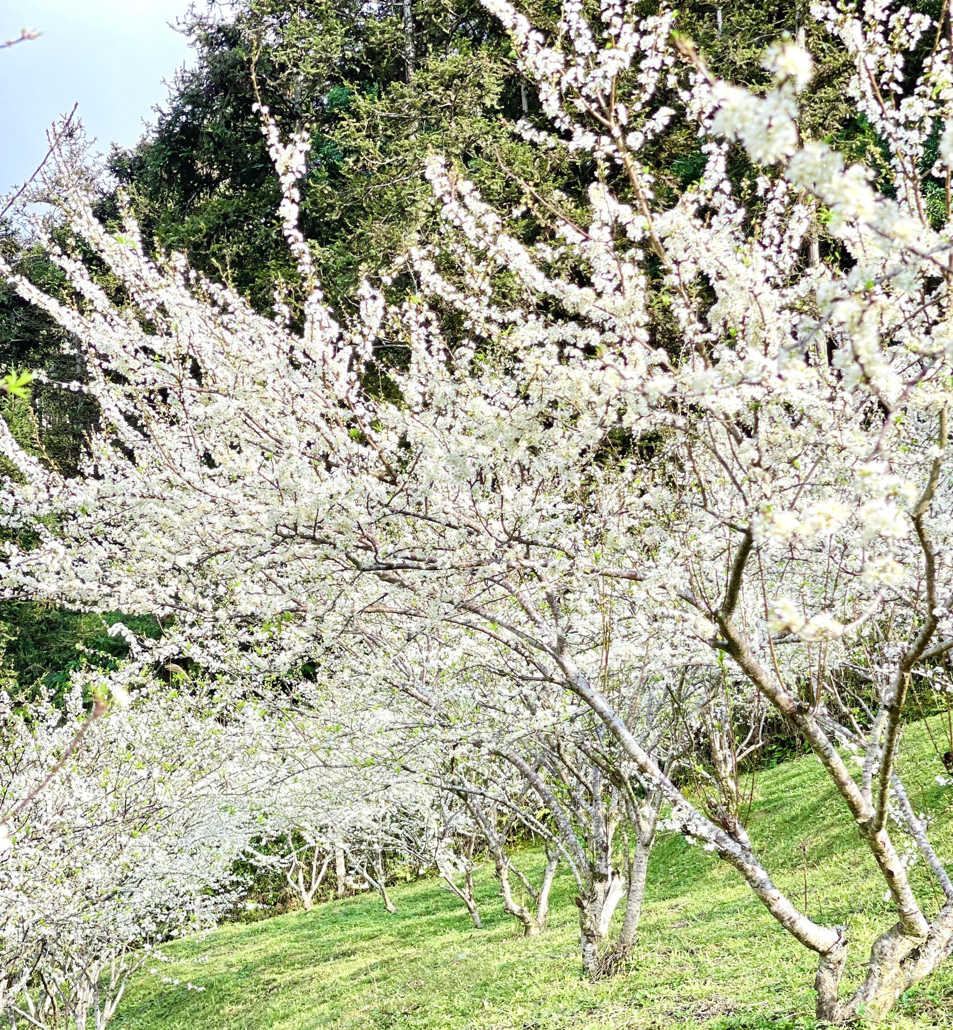 Một màu trắng tinh xen lẫn màu của những gốc mận xù xì cổ thụ, mùi hương mận dịu nhẹ, thoảng bay theo gió tạo cho bạn cảm giác như đang lạc vào cõi tiên.