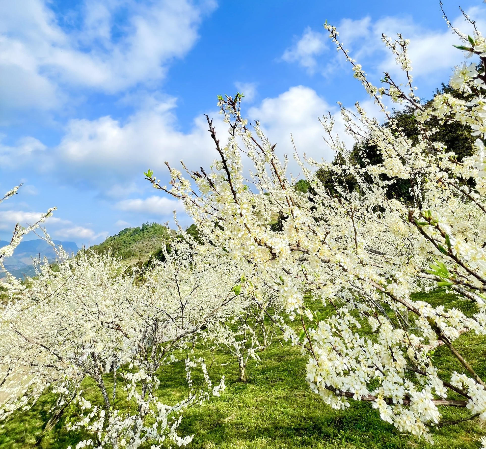 Giữa trùng điệp của màu xanh bạt ngàn núi rừng, bỗng những bông hoa mận bừng nở, khoe sắc giữa đất trời, tràn qua những thung lũng, làng bản.
