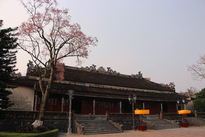 Hai cây ngô đồng được trồng hai bên góc phía sau điện Thái Hòa, nơi vua triều Nguyễn xưa kia ngự triều.