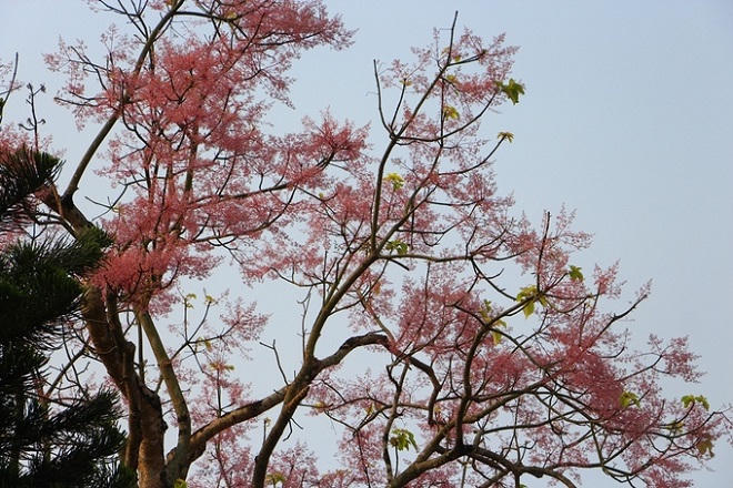 Các bông hoa ngô đồng nhỏ nhưng kết hợp lại với nhau như "phượng múa rồng bay" trông rất đẹp mắt. Hoa ngô đồng nở đẹp nhất là cuối tháng 4 đầu tháng 5 khi lá của cây rụng hết.