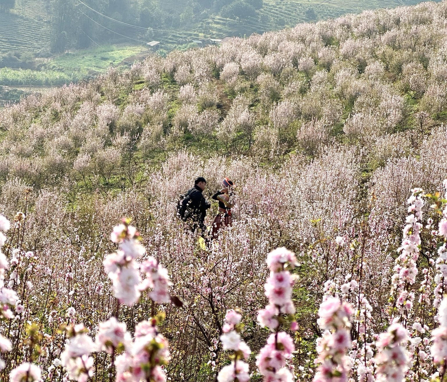 Vào tháng 2, khi những sắc hoa mai, hoa đào đã tàn, nhất chi mai lại đâm chồi nảy nụ ra những bông hoa trắng muốt như những bông tuyết bắt đầu chớm nở khiến du khách như lạc vào chốn tiên cảnh.