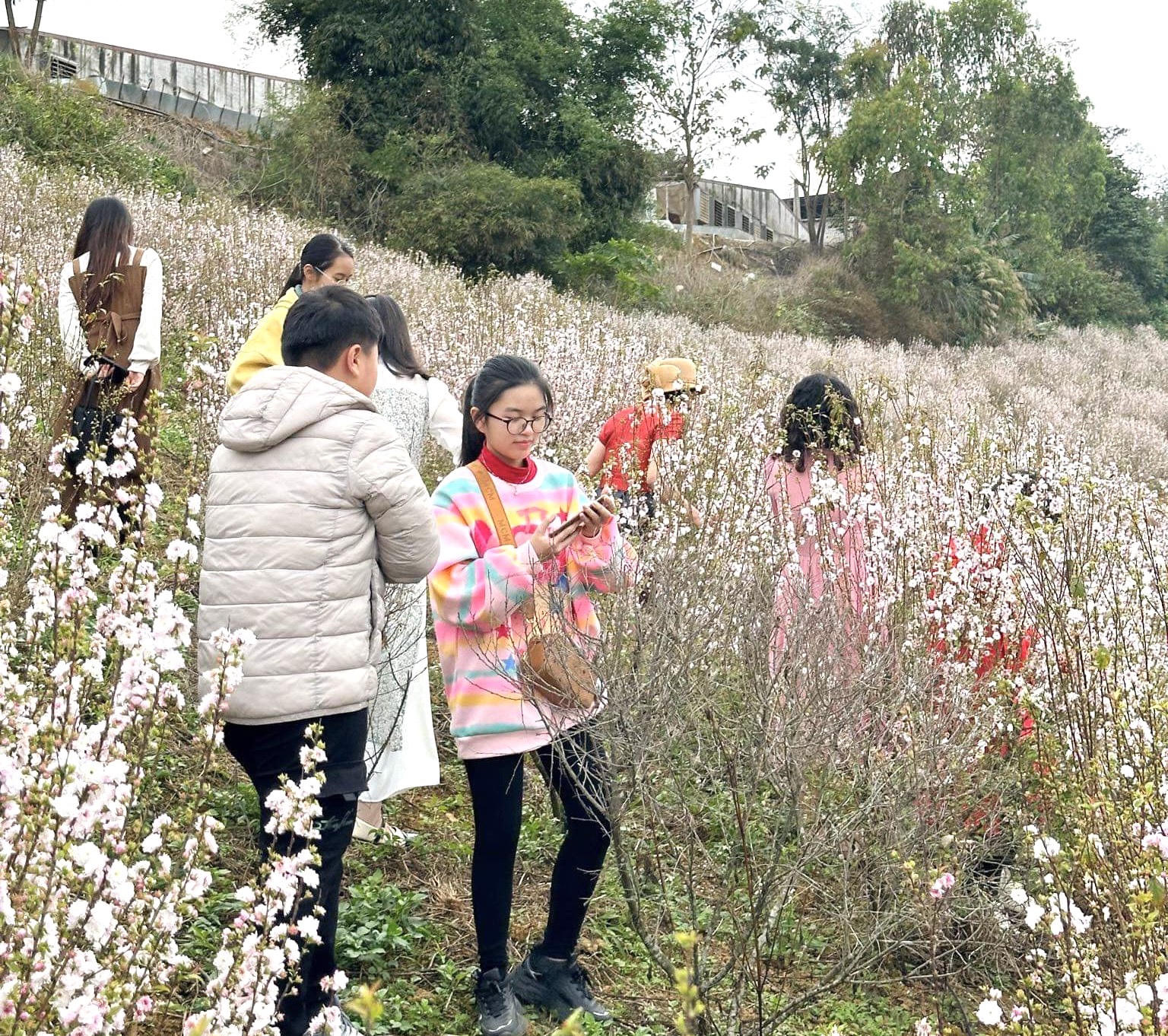 Vườn hoa nhất chi mai giữa lòng thành phố Lai Châu thu hút nhiều bạn trẻ tới chụp hình, check in.