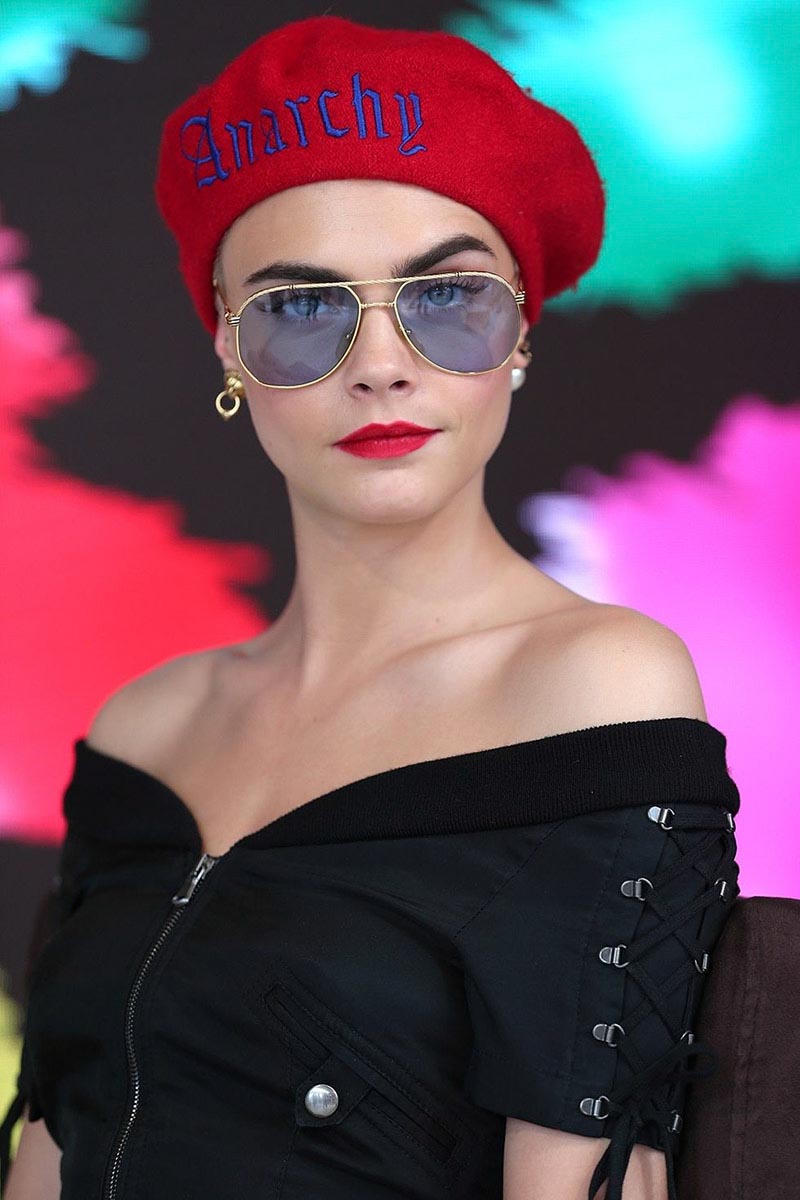 Cũng như xu hướng thời trang slogan trên những chiếc áo thun, chúng ta vẫn có thể để cho những chiếc mũ của mình trở thành phụ kiện biết “lên tiếng” cho khổ chủ. Như người mẫu kiêm diễn viên Cara Delevingne, cô cũng đã diện cho mình chiếc mũ nồi nổi bật với chữ “Anarchy” (tạm dịch: Vô chính phủ), khá phù hợp với tính cách nổi loạn của cô ấy.