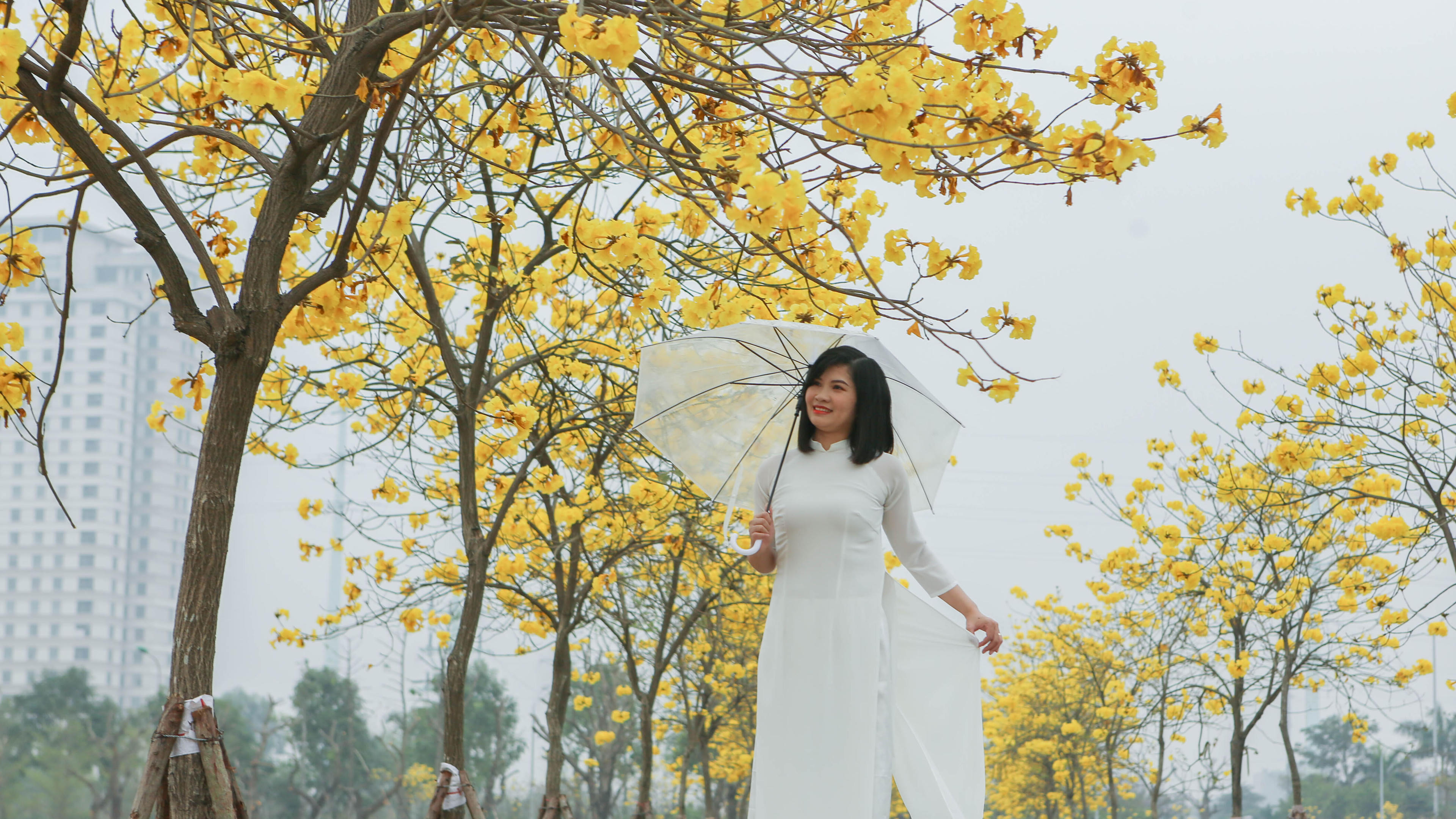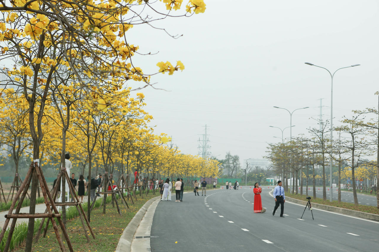 (PLVN) - Sắc vàng rực rỡ của hoa phong linh bung nở tại Khu đô thị Park City Hà Nội (Quận Hà Đông) đã thu hút đông đảo người dân Thủ đô tới tham quan, chụp ảnh.