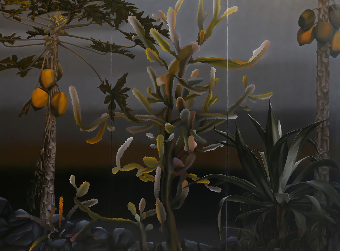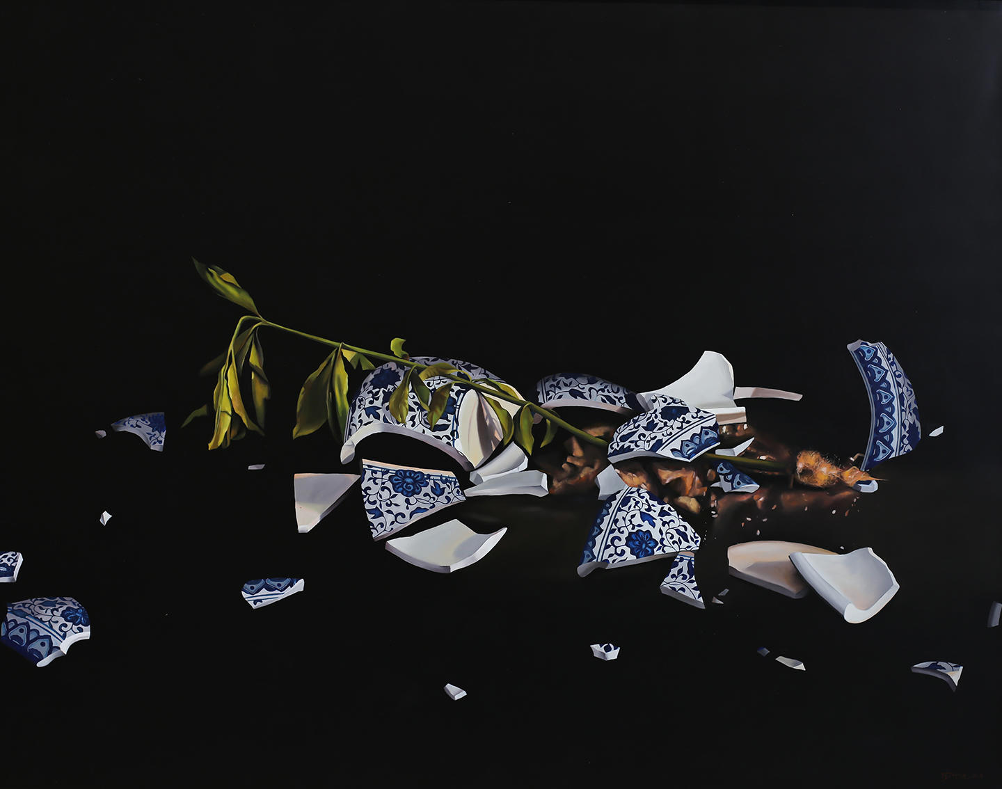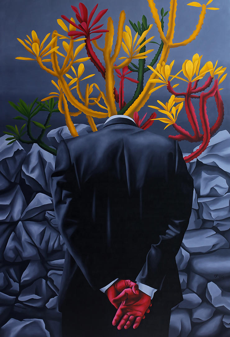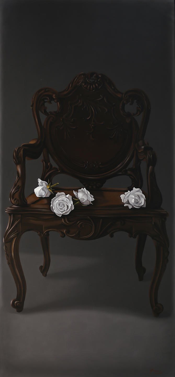 Thế nên, với series tranh trong triển lãm lần này tôi cũng không nhiều bỡ ngỡ khi chủ đề đã thay đổi, nhưng sự ngạc nhiên nhiều nhất lại nằm ở sự thay đổi quan niệm về tương quan và chiều thời gian. Tất cả có thể nói gọn một cách nôm na là trạng thái ‘hiện thực tâm tưởng’ rất mới.