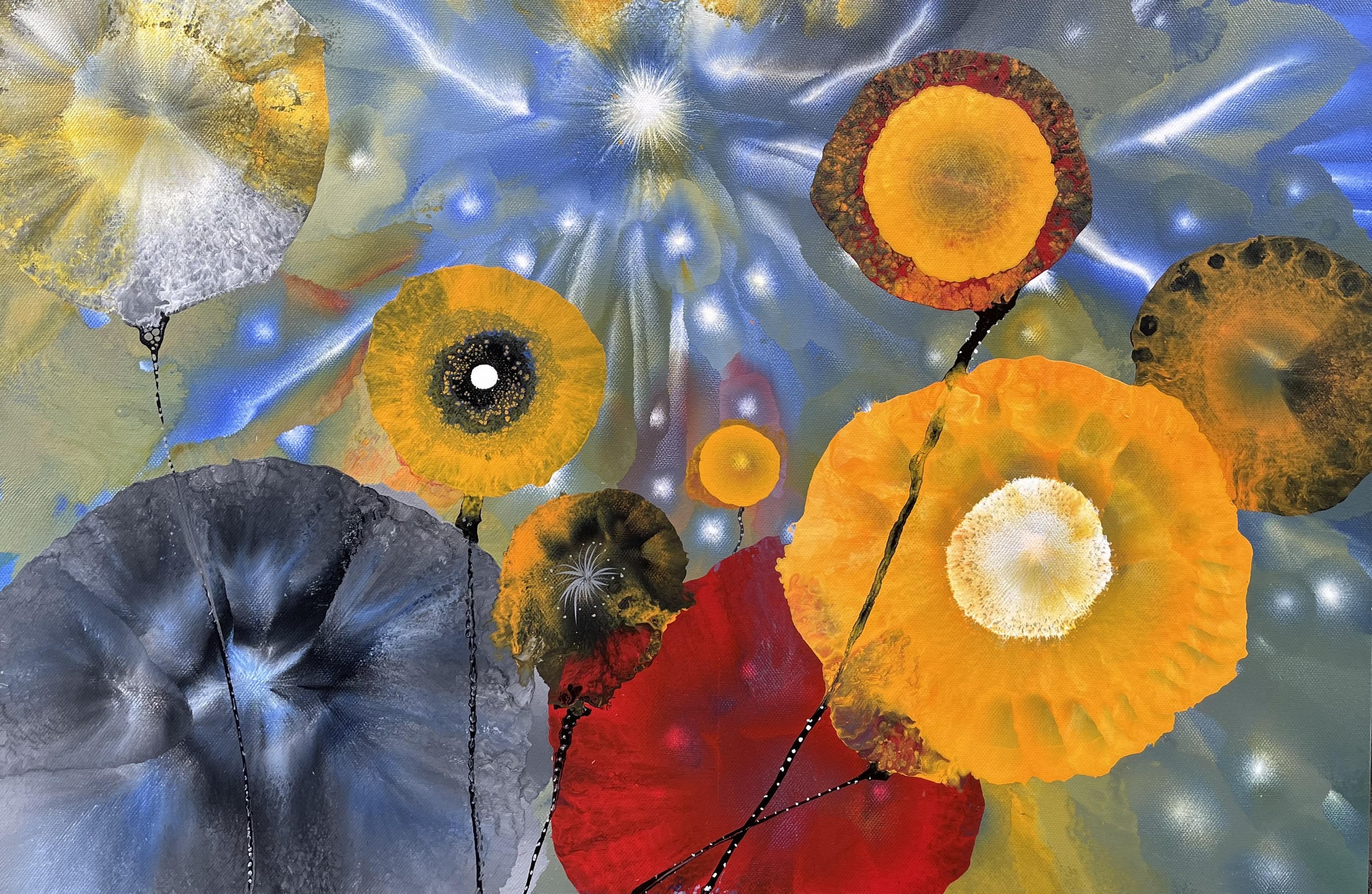Anh không muốn dùng kỹ thuật để “cầm tù” cảm xúc, mà cứ để tuôn chảy, bức nào thì không ưng thì bỏ, vẽ ngay bức khác. Ảnh: BTC |