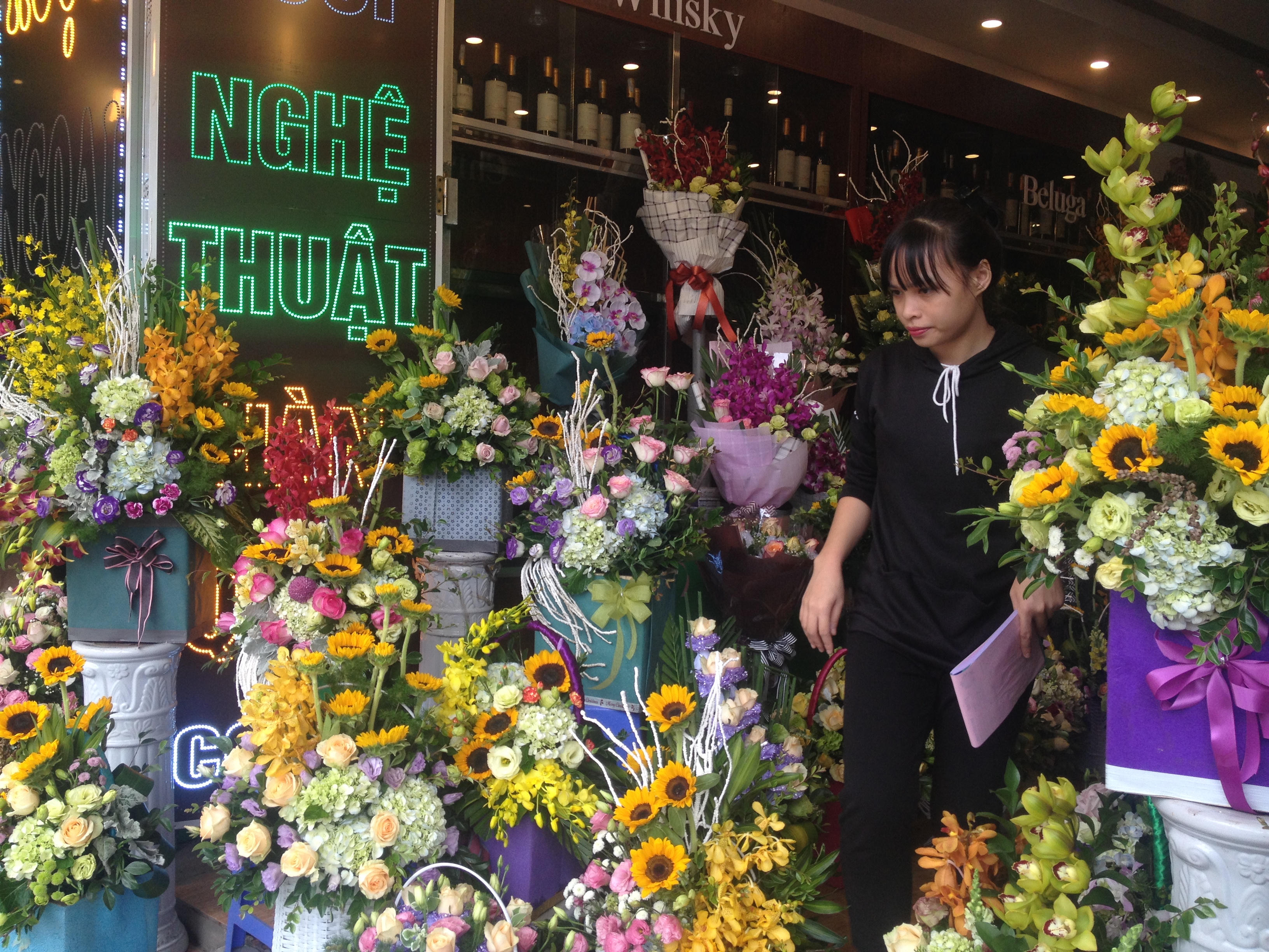Anh Thùy, chủ một cửa hàng hoa tươi ở quận Cầu Giấy, cho biết: “Đến hôm nay cửa hàng chúng tôi đã nhập gấp 3 lần lượng hoa so với ngày thường. Dù nhập nhiều hoa về trước ngày lễ nhưng giá hoa nhìn chung là bình ổn so với năm ngoái. Giá bán ra tăng nhẹ từ 10-20% so với ngày thường, tùy từng loại và tùy từng đơn hàng, ví dụ: hoa hồng Đà Lạt từ 30.000 đồng-35.000 đồng/bông, hoa ly 3-5 bông giá từ 250.000 đồng-350.000 đồng…”.