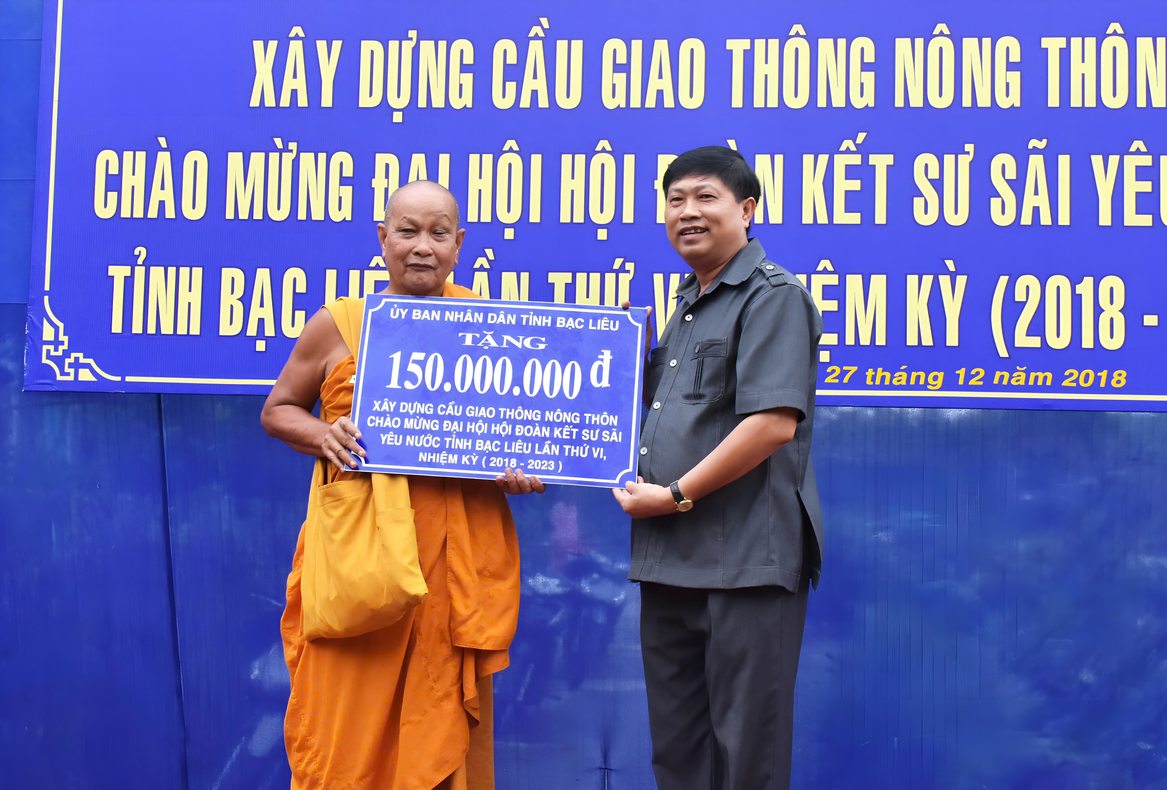 Hòa thượng Lý Sa Mouth đã vận động các cấp, các ngành tỉnh Bạc Liêu và bà con phật tử... nhiều công trình giao thông nông thôn tại địa phương. |