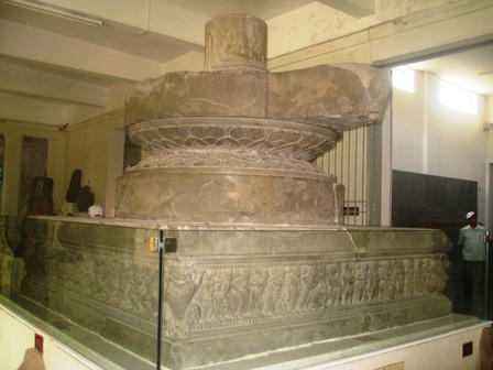 Các bộ phận của đài thờ được sưu tầm từ làng Trà Kiệu (tổng Mậu Hòa, phủ Duy Xuyên, nay thuộc xã Duy Sơn, huyện Duy Xuyên, tỉnh Quảng Nam) và được đưa về Đà Nẵng vào tháng 12/1891 và tháng 1/1892. Đây là đài thờ Chămpa duy nhất còn lại tương đối nguyên vẹn. Cấu tạo của bệ yoni với hai thớt tròn đối xứng qua hai lớp cánh sen và một chiếc linga ba tầng đặt trong lòng là một cấu tạo tiêu biểu của tổ hợp yoni-linga trong văn hóa cổ Ấn Độ đã được tiếp thu ở Chămpa.