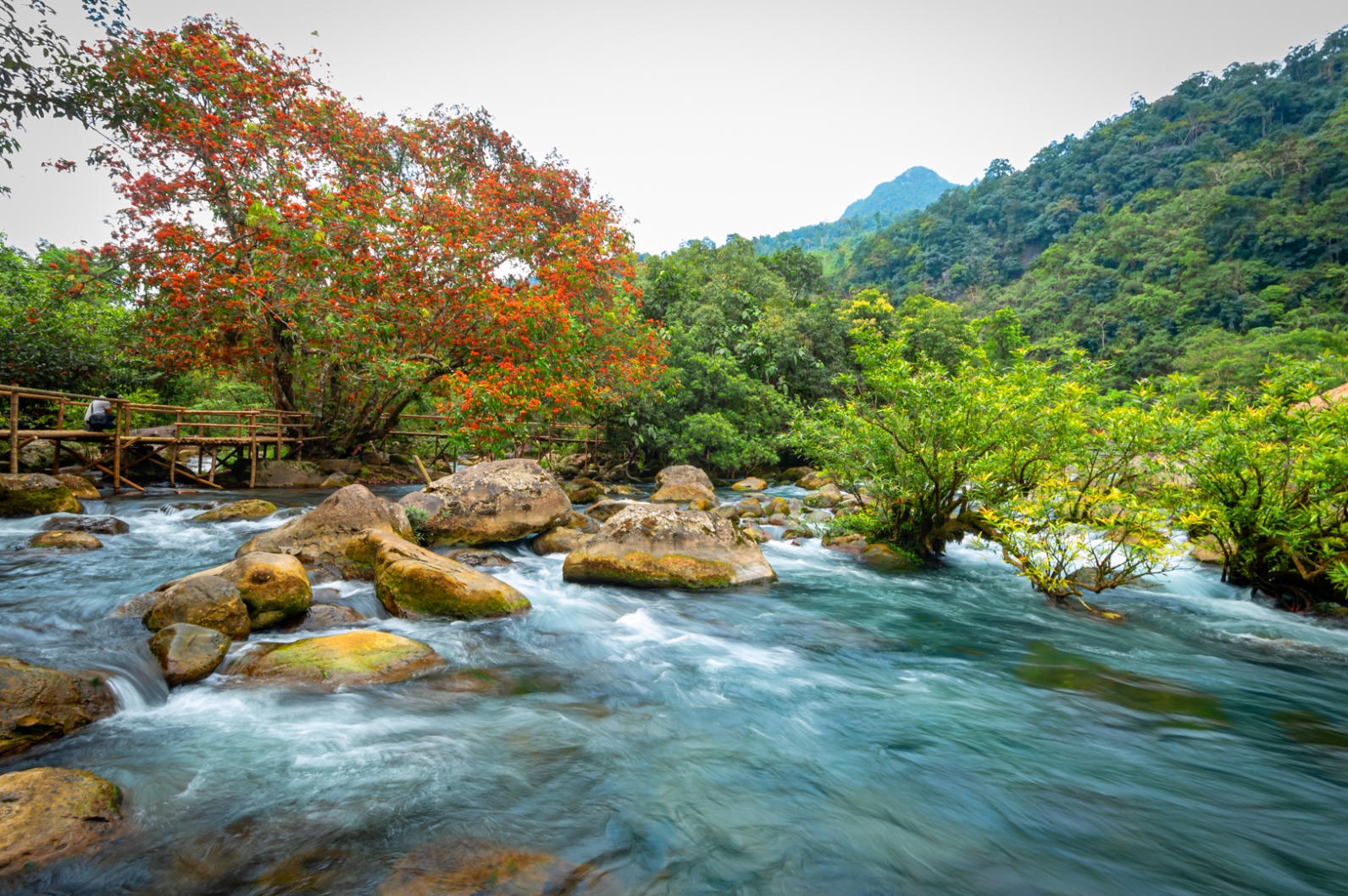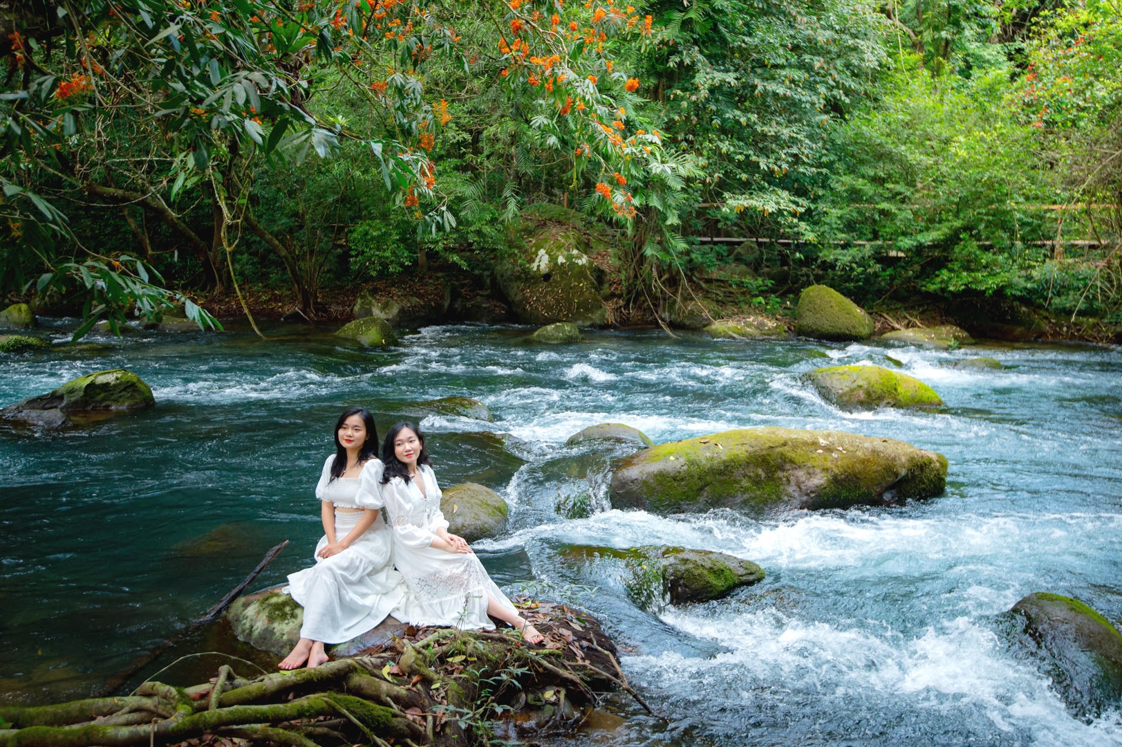 Những chùm hoa Vàng Anh soi bóng dưới làn nước xanh trong như ngọc bích của suối Moọc tạo nên những khung cảnh tuyệt diệu.
