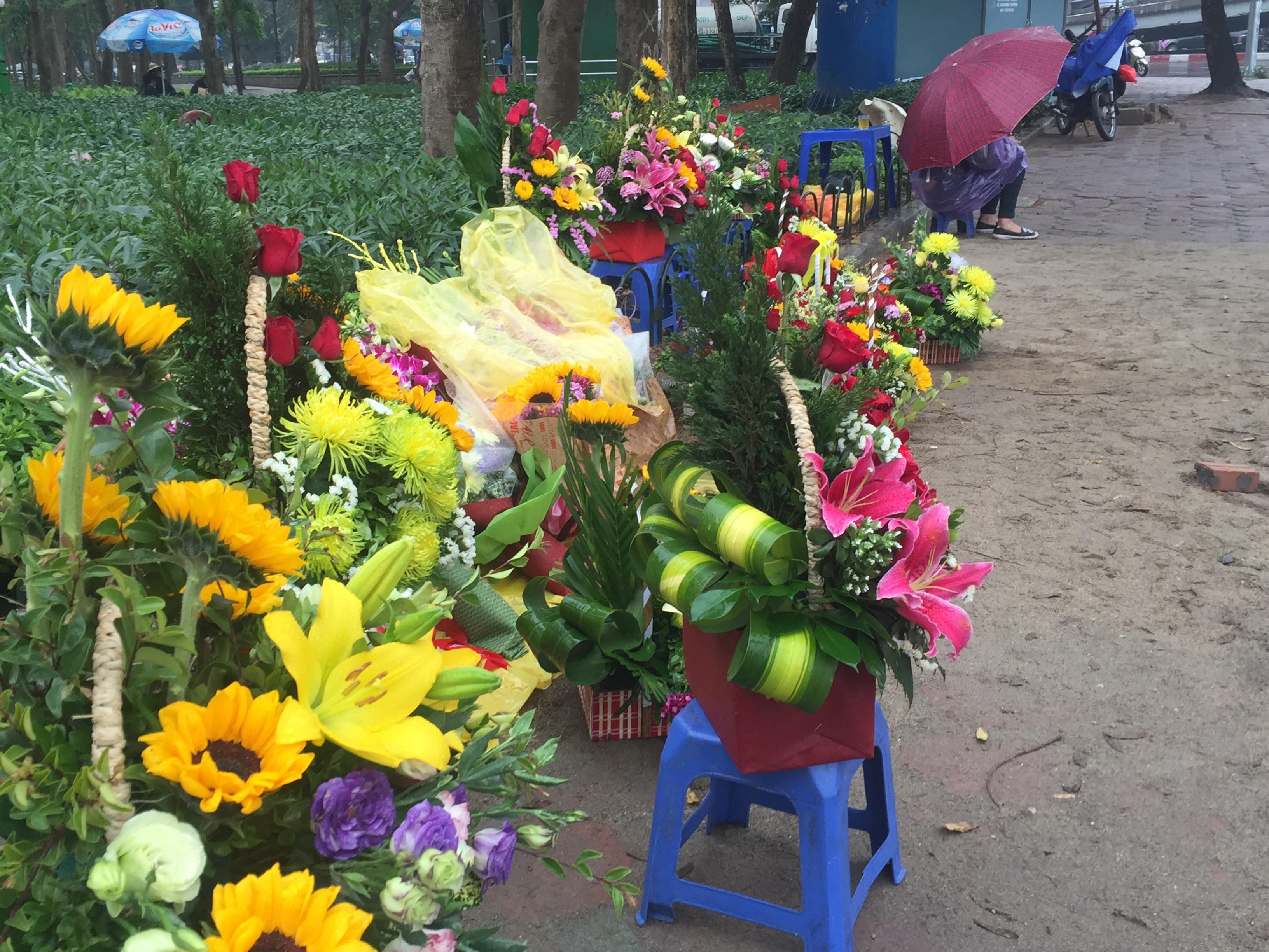 Dù Hà Nội có không ít tiệm hoa lớn nhưng trên khắp các đường phố vẫn có nhiều xe hoa rong, những hàng hoa vỉa hè. Những "hàng hoa di động" này được nhiều người chọn mua, phần vì "tiện", phần vì ngại thời tiết và hoa cũng đa dạng, tươi lâu, giá cả lại mềm hơn các tiệm hoa lớn.