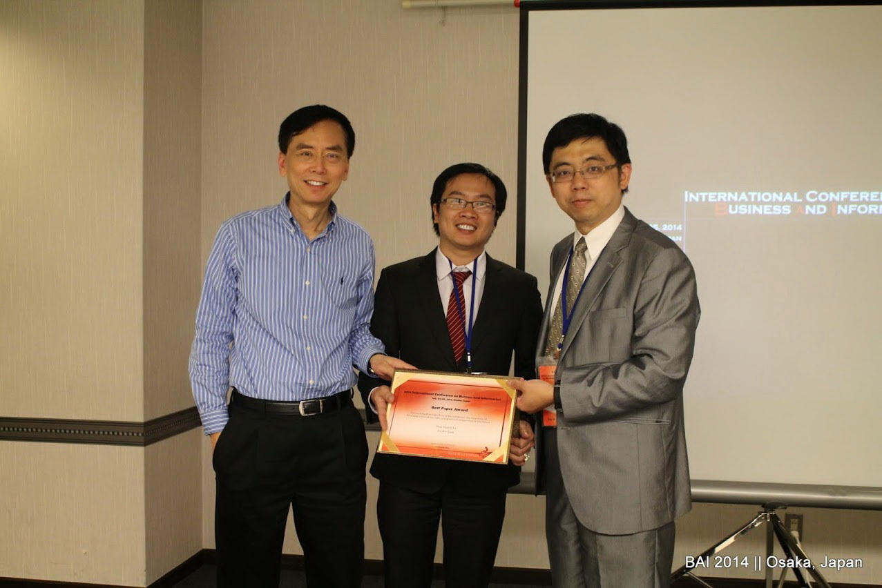 | Lê Thanh Hòa nhận thưởng nghiên cứu khoa học xuất sắc nhất tại Hội thảo quốc tế về kinh tế và thông tin tại Nhật Bản năm 2014. |