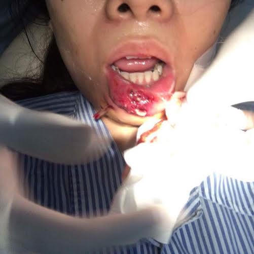 Các bác sĩ đã chỉ định rạch môi để lấy hết dịch mủ. Tuy nhiên do bệnh nhân kháng kháng sinh nên việc điều trị tiến triển chậm, không loại trừ phải cắt gần hết môi dưới.