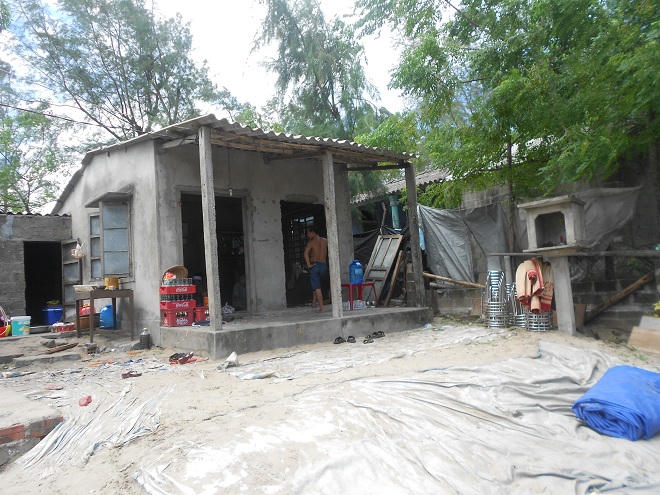 Lo tiền thuốc men và tiền ăn uống cho cả 6 miệng ăn, nên căn nhà vợ chồng xây gần hai chục năm bằng tiền hai bên họ hàng mừng cưới, vẫn cứ mãi trống hươ trống hoác. Tường bằng gạch xỉ đã bong tróc, cũ kỹ, phủ rêu xanh nhưng vẫn chưa thể tô quét. Mái nhà bằng fibro xi măng bể nát, dột tứ tung vẫn chưa có tiền thay.