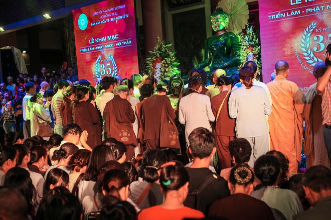 (PLO) -Chào mừng kỷ niệm 35 năm thành lập Giáo hội Phật giáo Việt Nam, chào mừng Đại hội lần thứ 8 Giáo hội Phật giáo Việt Nam, Ban Văn hóa Trung ương Giáo hội Phật giáo Việt Nam phối hợp với Ban Nghi lễ Trung ương Giáo hội Phật giáo Việt Nam và chùa Yên Phú tổ chức lễ cung nghinh và chiêm bái tượng Phật ngọc Hòa bình Thế giới vào tối 2/7/2016