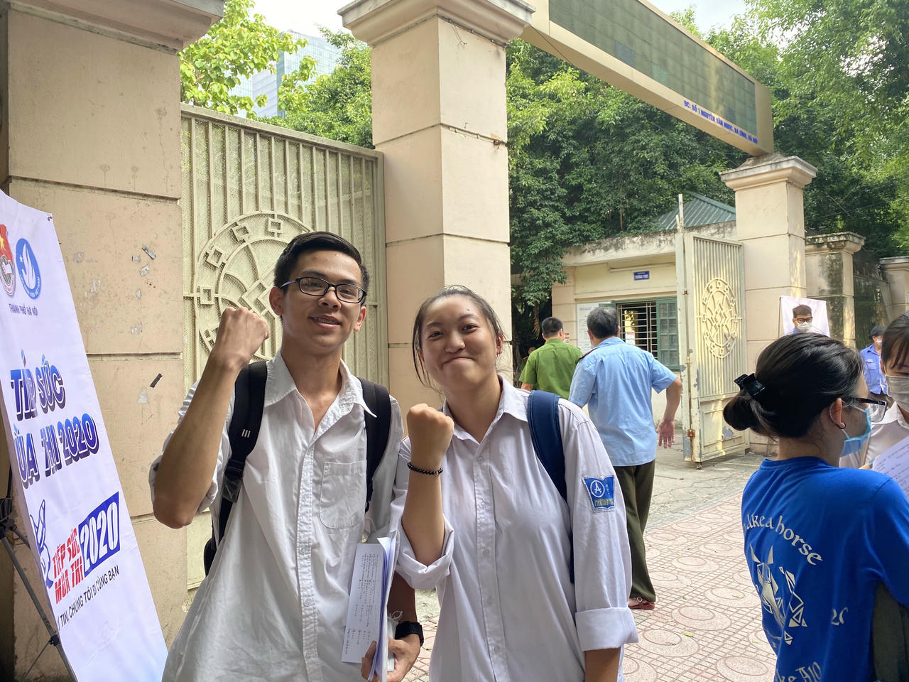 Kết thúc giờ làm bài môn Toán, tại điểm thi Trường THPT Phạm Hồng Thái, nhiều thí sinh không giấu được niềm vui khi hoàn thành bài thi thứ 2 của mình.