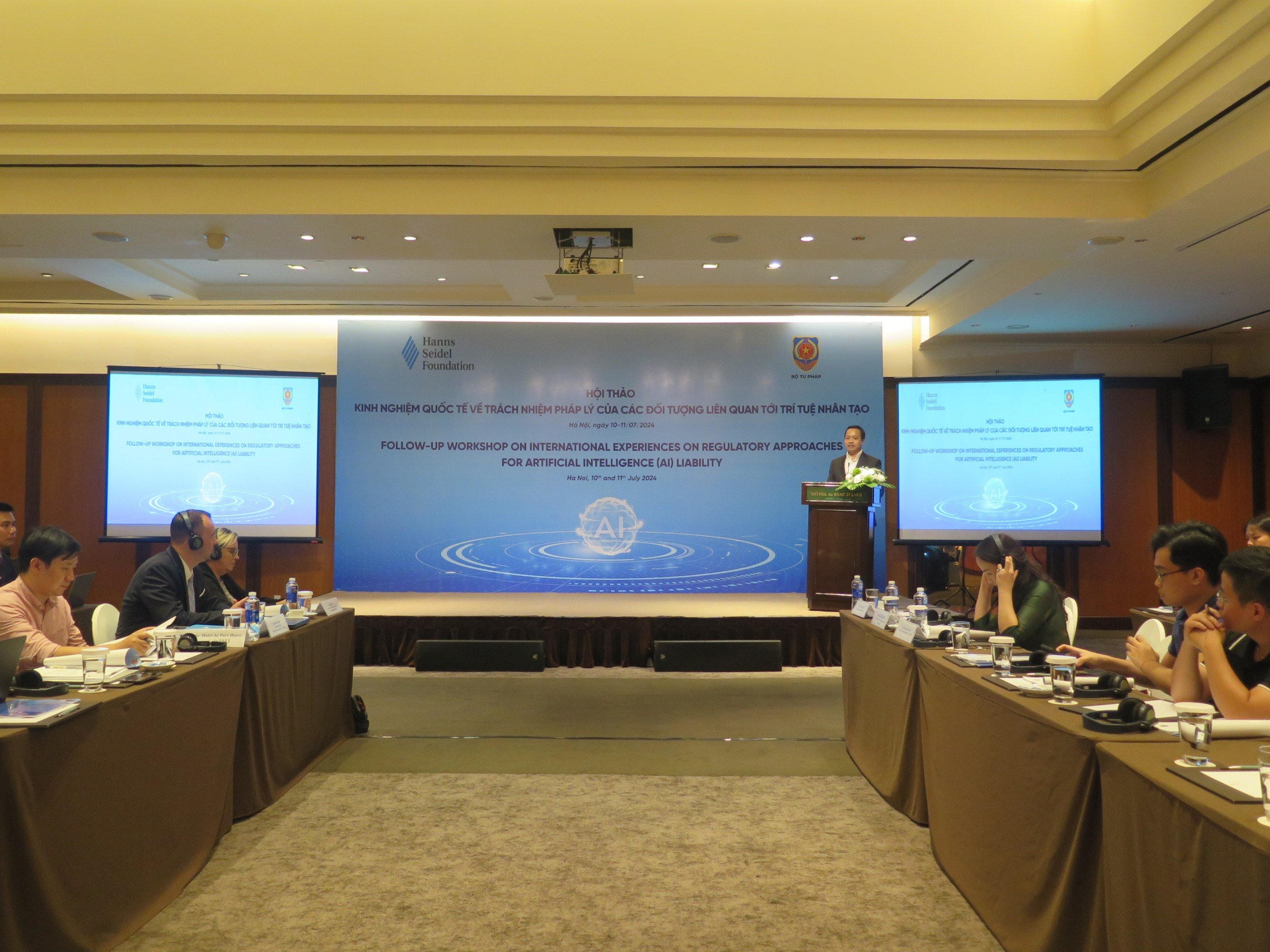 (PLVN) - Chiều 10/7, Bộ Tư pháp phối hợp với Quỹ Hanns Seidel Foundation tổ chức Hội thảo kinh nghiệm quốc tế về trách nhiệm pháp lý của các đối tượng liên quan tới trí tuệ nhân tạo. Hội thảo thuộc khuôn khổ Chương trình hợp tác ba năm Đối thoại nhà nước pháp quyền giữa Bộ Tư pháp CHXHCN Việt Nam và Bộ Tư pháp liên bang CHLB Đức.