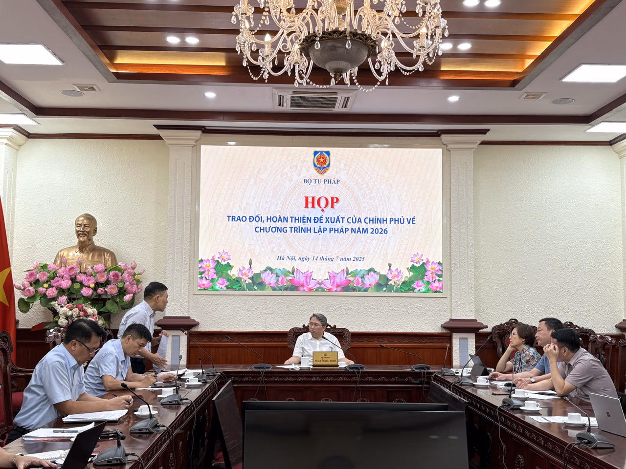 Sáng 14/7, Bộ trưởng Bộ Tư pháp Nguyễn Hải Ninh chủ trì cuộc họp trao đổi, hoàn thiện Đề xuất của Chính phủ về Chương trình lập pháp năm 2026