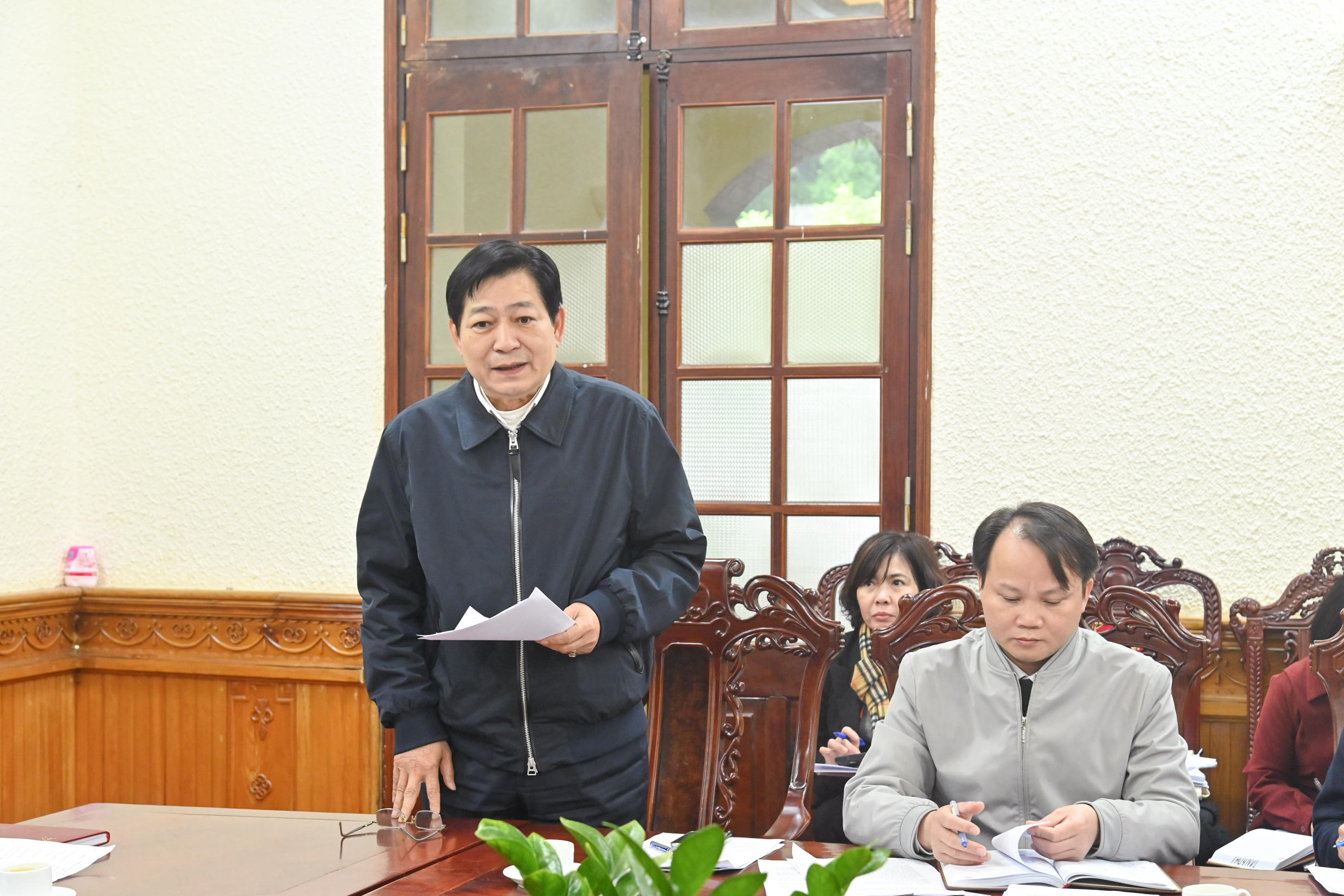 Tổng cục trưởng Tổng cục THADS Nguyễn Quang Thái phát biểu tại cuộc họp. |