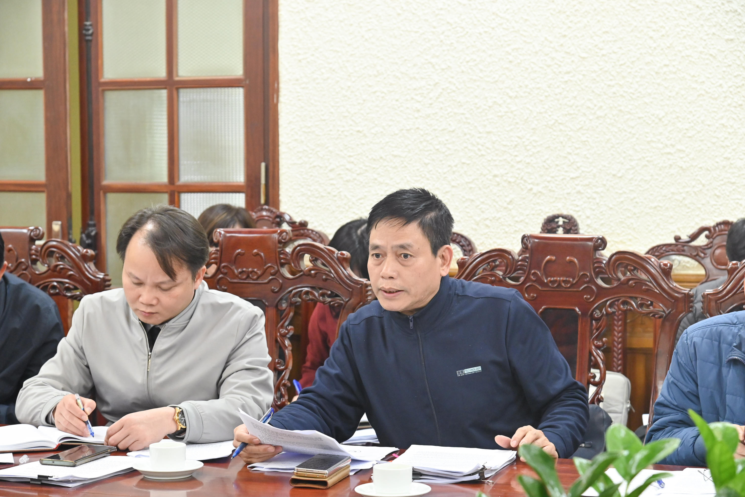 Phó Tổng cục trưởng Tổng cục THADS Nguyễn Văn Sơn báo cáo tại cuộc họp. |