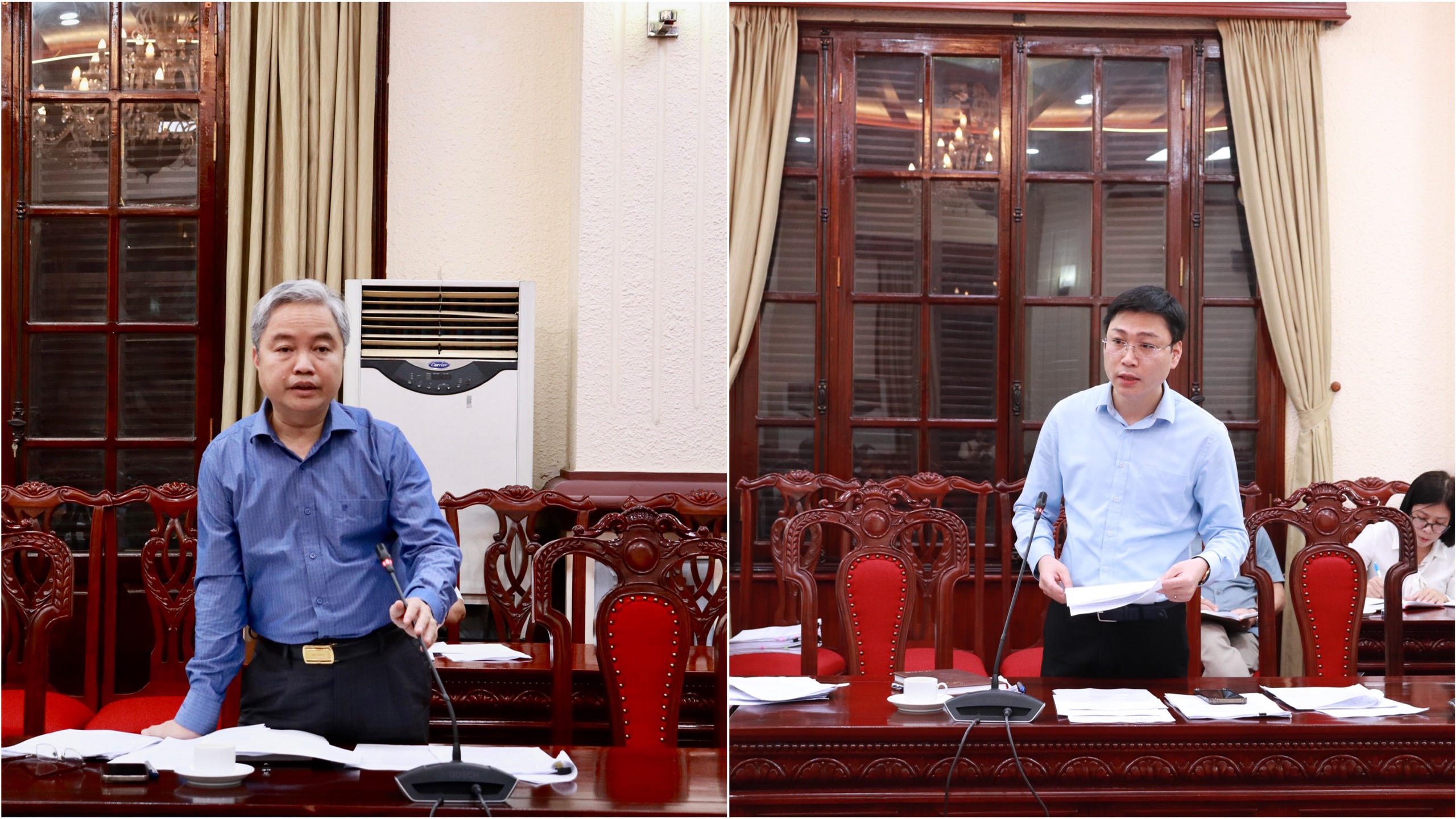 Tổng cục trưởng Tổng cục THADS Nguyễn Quang Thái và Chánh Văn phòng Bộ Đỗ Xuân Quý phát biểu ý kiến |