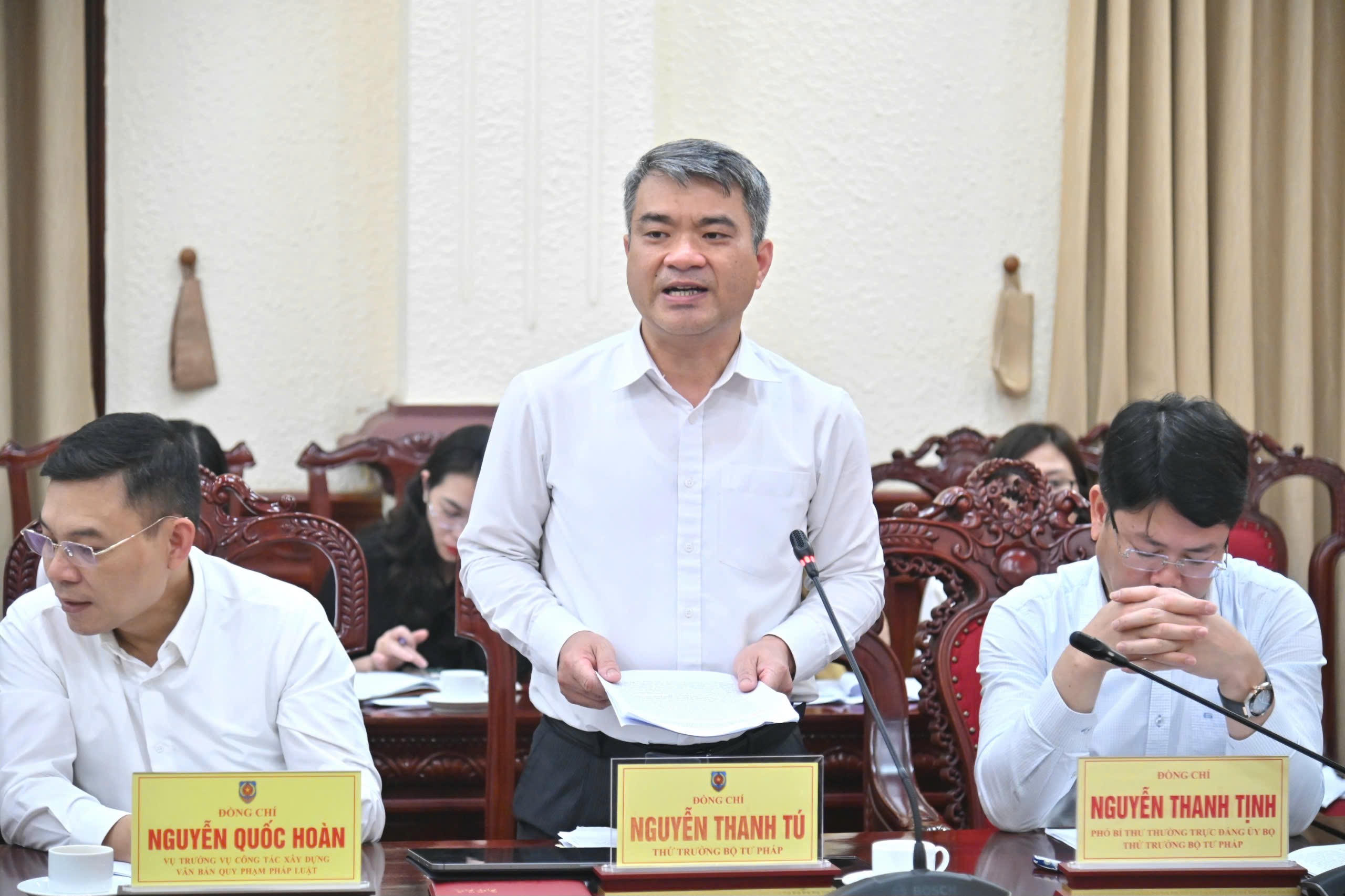 Phát biểu định hướng tại cuộc họp, Bộ trưởng Nguyễn Hải Ninh cho biết, trong thời gian qua, Ủy ban Pháp luật và Tư pháp của Quốc hội đã phối hợp chặt chẽ với Bộ Tư pháp để tham mưu cho Đảng ủy Chính phủ và Đảng ủy Quốc hội xây dựng các đề án quan trọng.