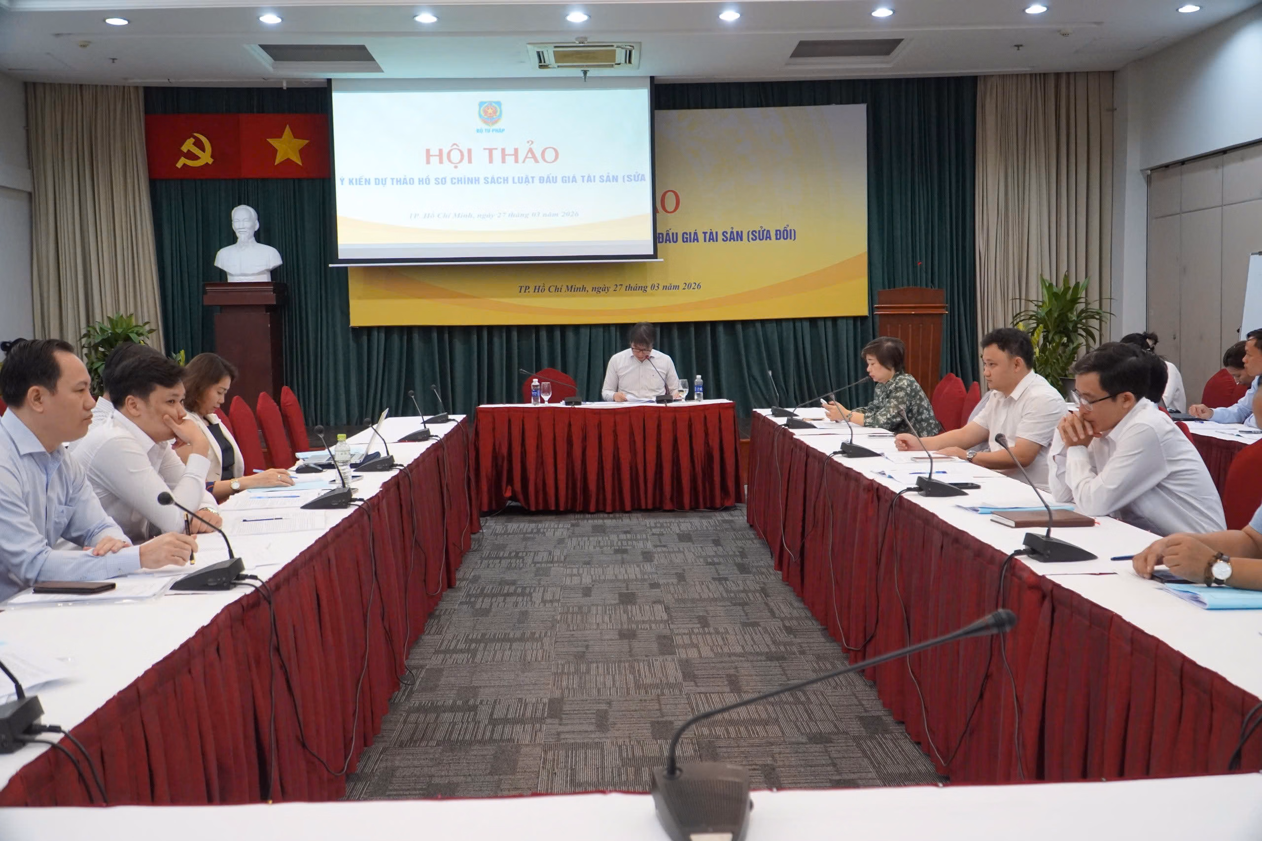 Ngày 27/3 tại TP. Hồ Chí Minh, Bộ Tư pháp tổ chức Hội thảo lấy ý kiến các cơ quan, tổ chức ở khu vực miền Nam đối với hồ sơ chính sách Luật Đấu giá tài sản (sửa đổi). Đến dự Hội thảo có đồng chí Lê Văn Tuấn - Phó Cục trưởng Cục Bổ trợ Tư pháp - Bộ Tư pháp cùng đại diện các sở ngành, trung tâm dịch vụ bán đấu giá tài sản, các công ty bán đấu giá... khu vực phía Nam.