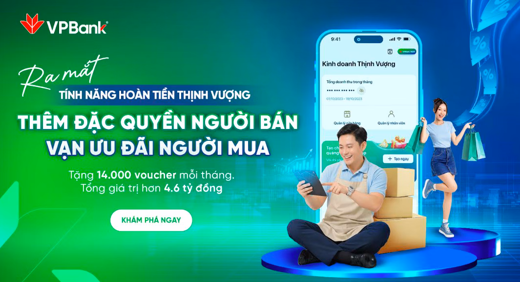 Trong bối cảnh thanh toán không tiền mặt ngày càng trở nên phổ biến và hành vi tiêu dùng liên tục thay đổi, VPBank giới thiệu chương trình “Hoàn Tiền Thịnh Vượng” như một giải pháp hai chiều mang lại lợi ích đồng thời cho cả hộ kinh doanh và các khách hàng.